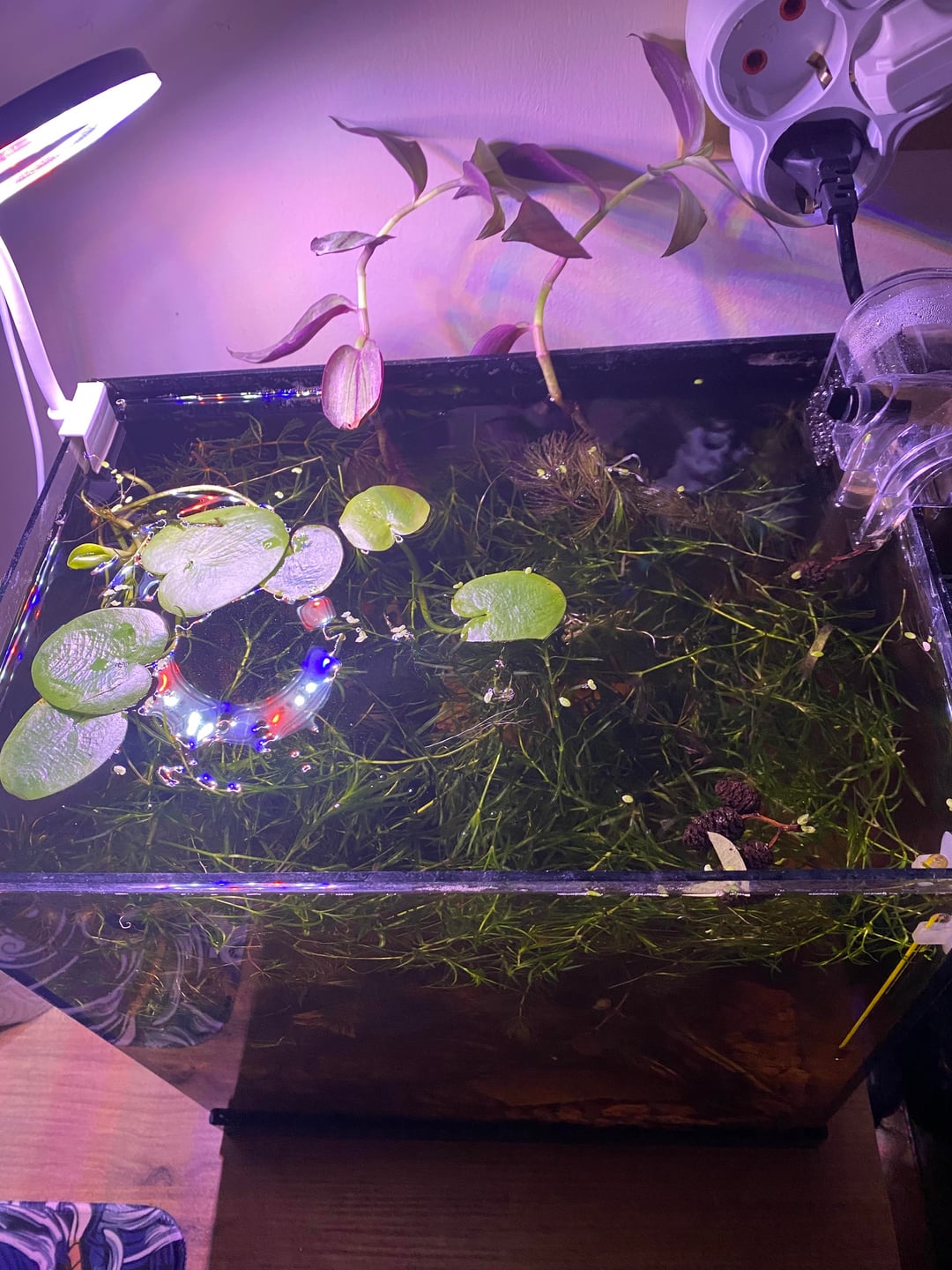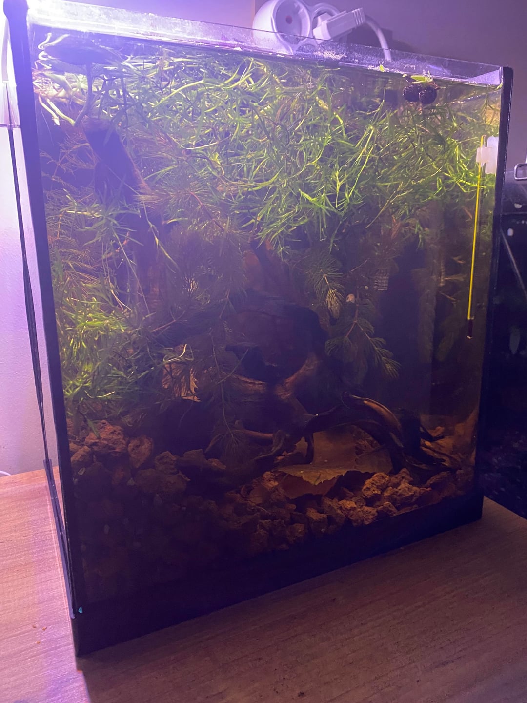 I tried to set up a complex aquarium to mimic the natural environment. Currently, I have two dwarf snails living there. I'm thinking of a short-finned female wild betta.