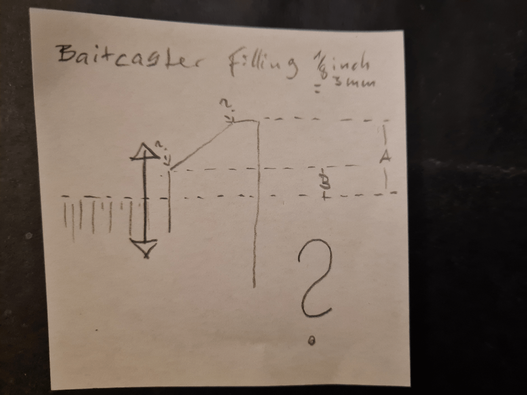 What's the correct clearance mark for filling a Baitcaster reel. It says 1/8" or 3mm. Should i fill it till where that 45° angle starts or 3mm from top. Figure A or B? Posted by Anubis_Corelatus