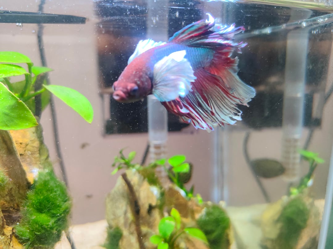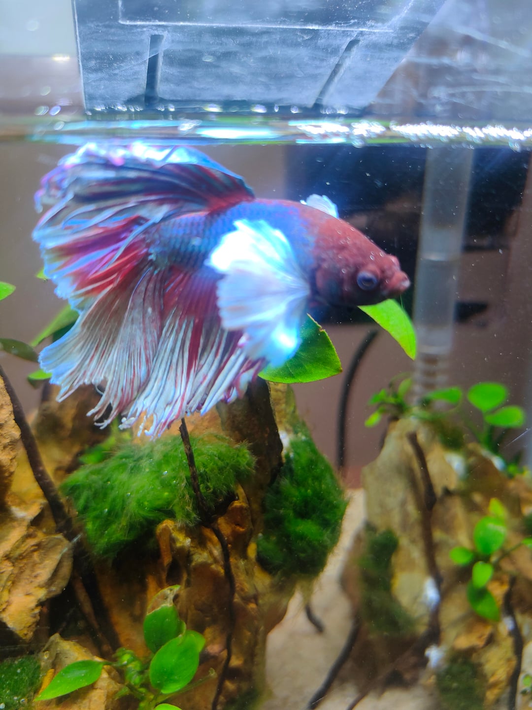 The previous photo I posted was dark due to the indian almond leaves. he's been with me a little more than a week now and already his colour seems to be improving a bit. So in love with this guy!