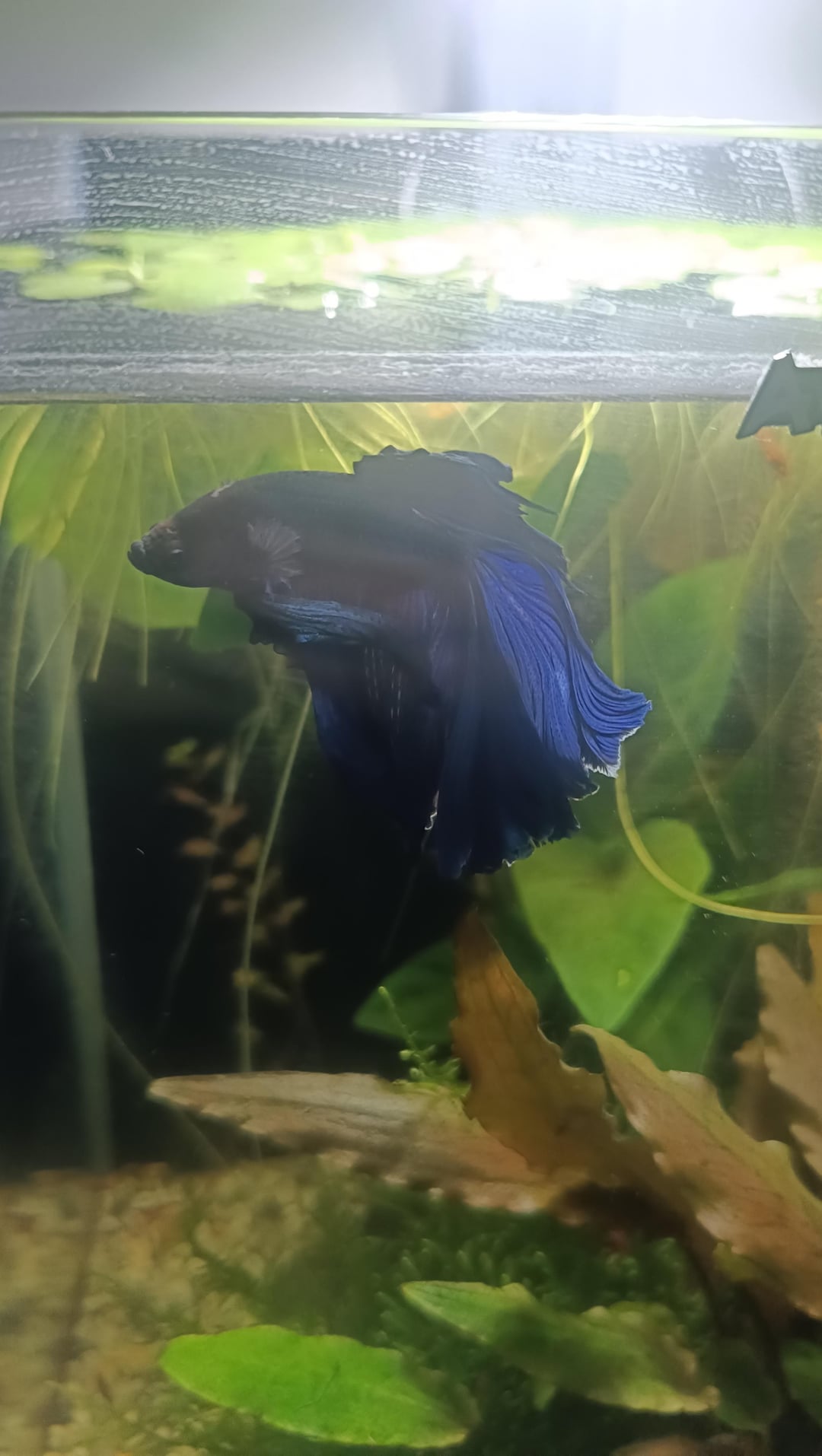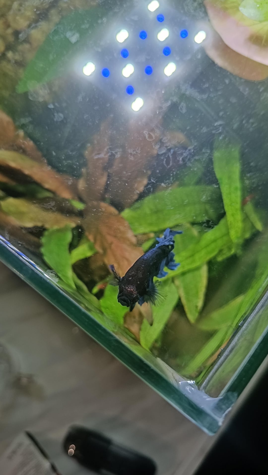 He's in a 30l, fully cycled tank (0 ammonia, 0 nitrites, around 5 nitrates), 20% water changes every week, no fake decor, only real plants and some driftwood.