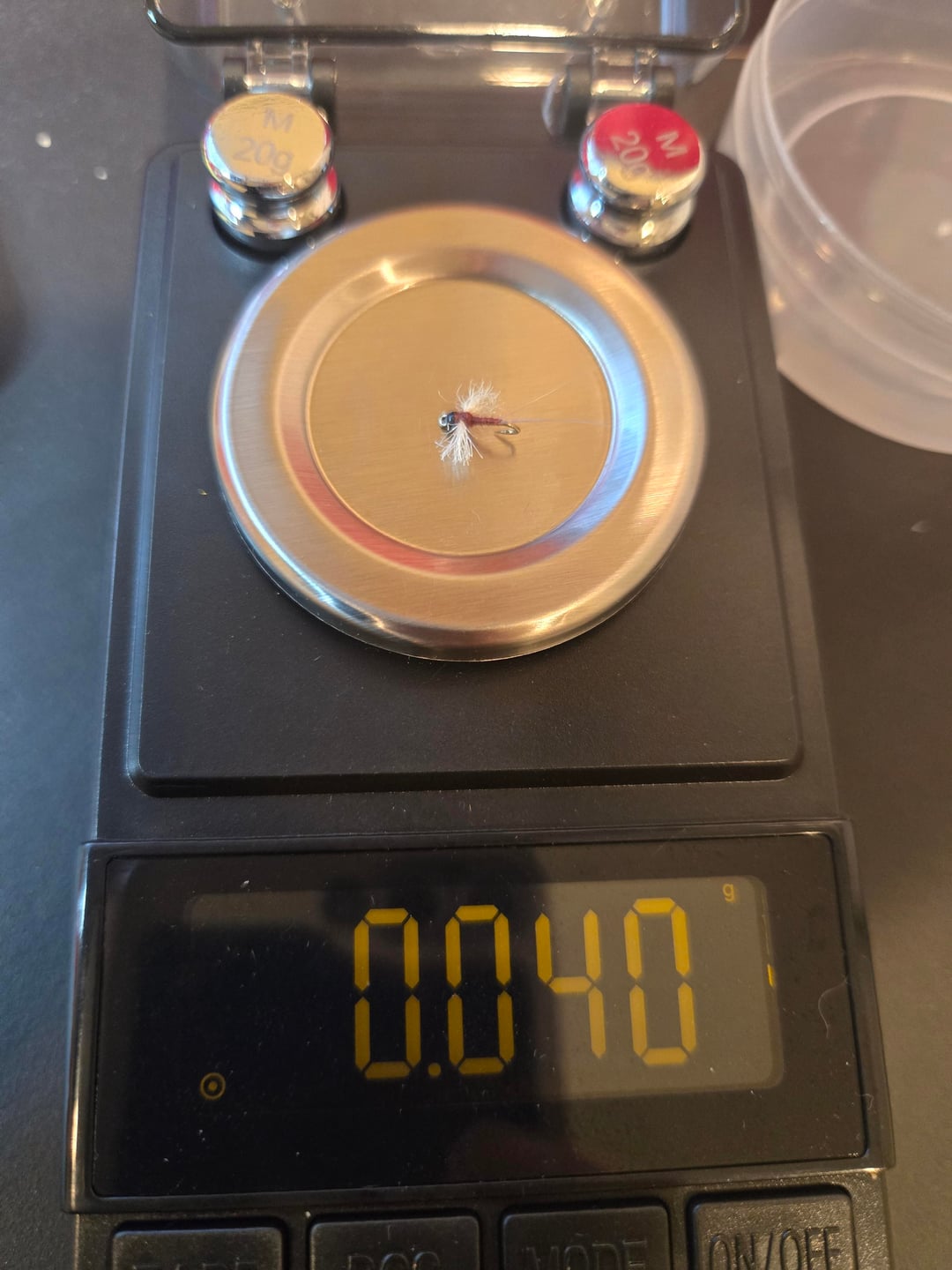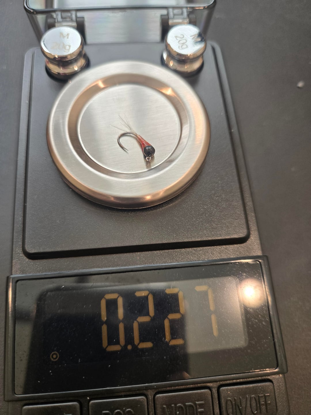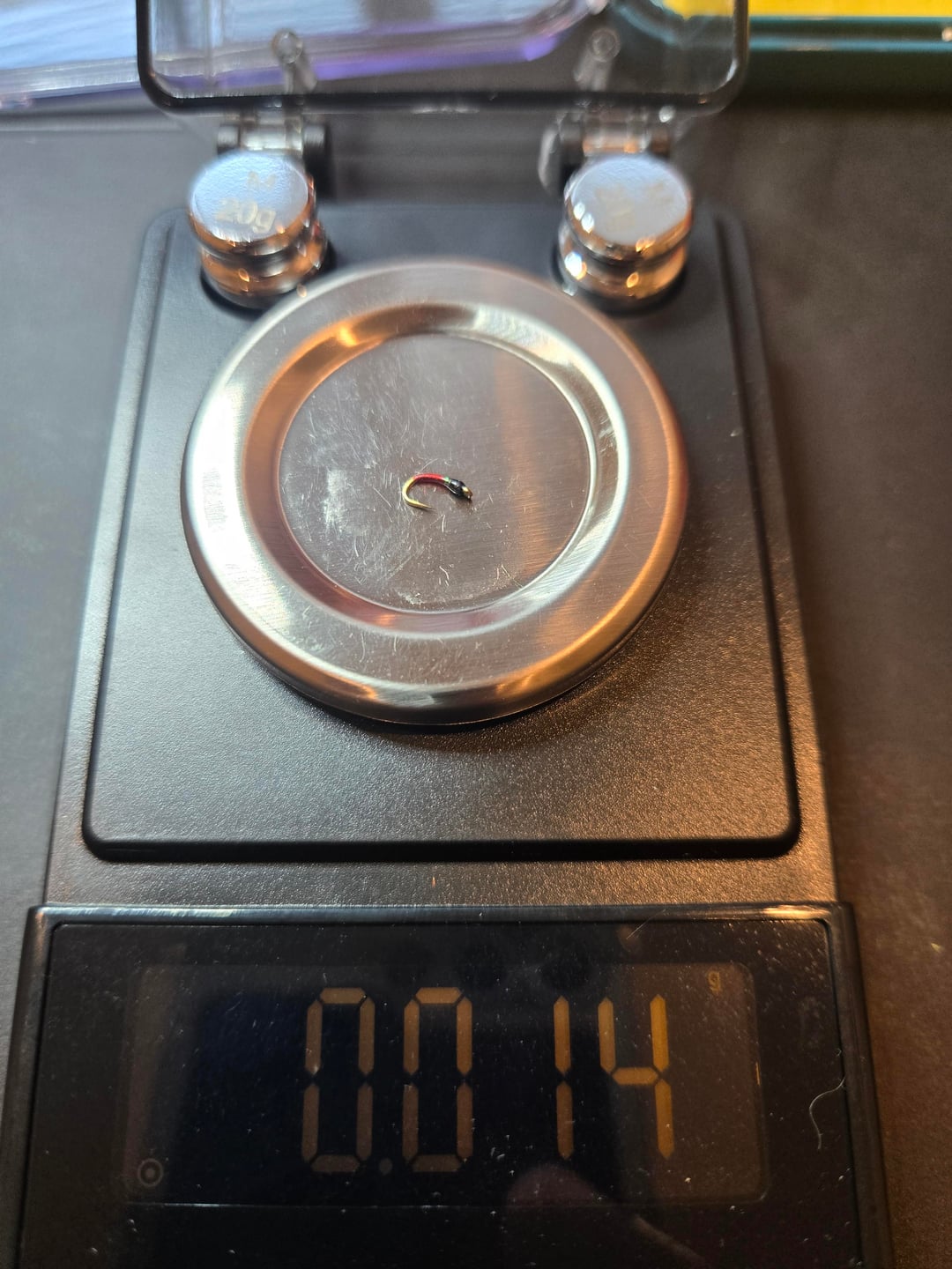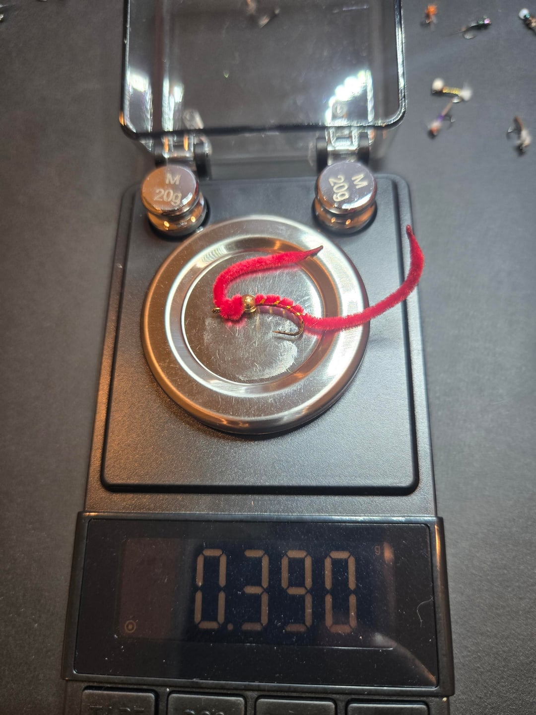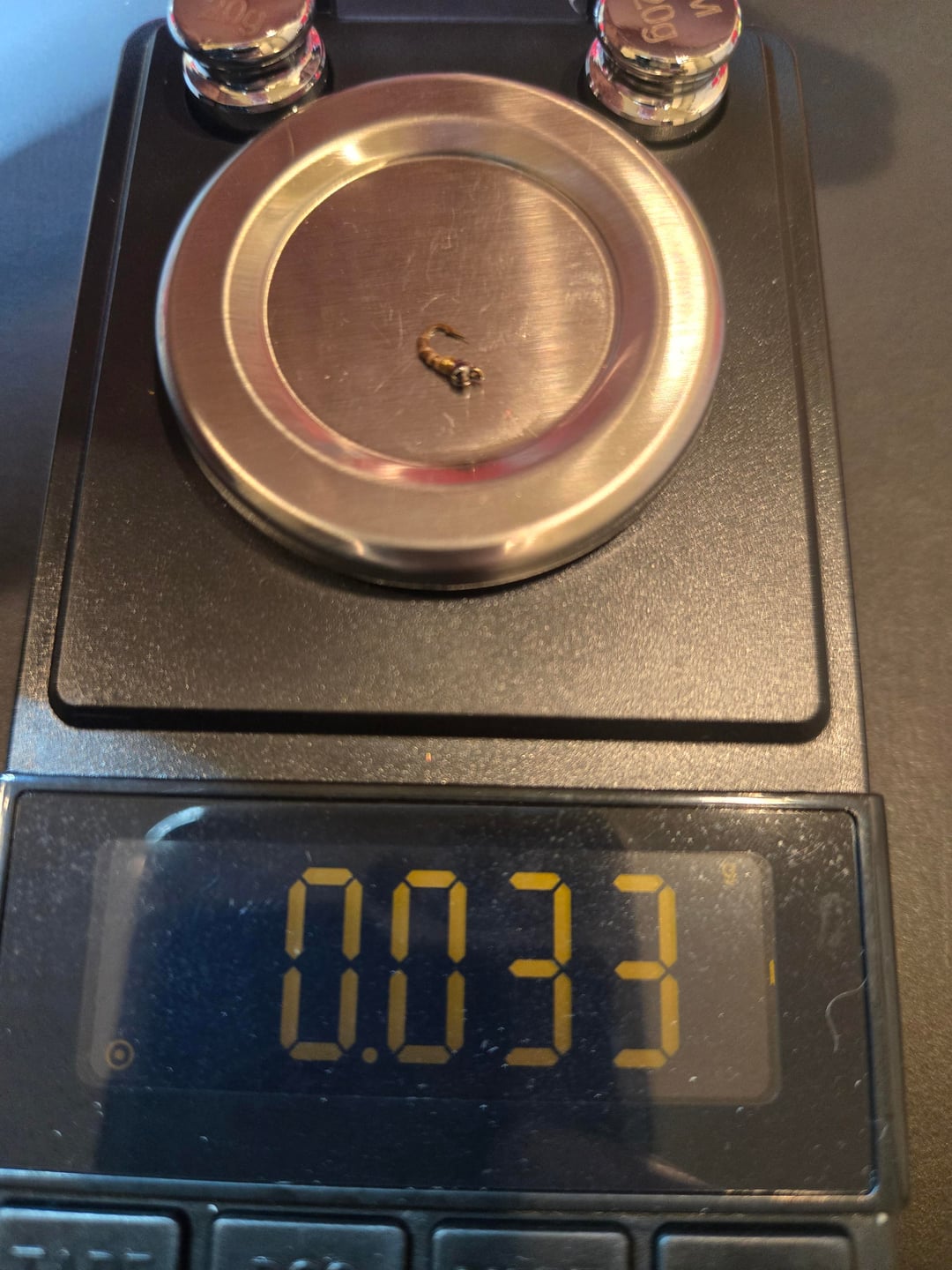 Follow up to original post. Some sample weights of various flies. Notice three similar looking midge patters, but differing weights. This helps to explain why I wanted to weigh all my flies – you cannot tell from looking how much a given fly might weigh. Weight categories/boxes range from under .025 oz to over .9 oz