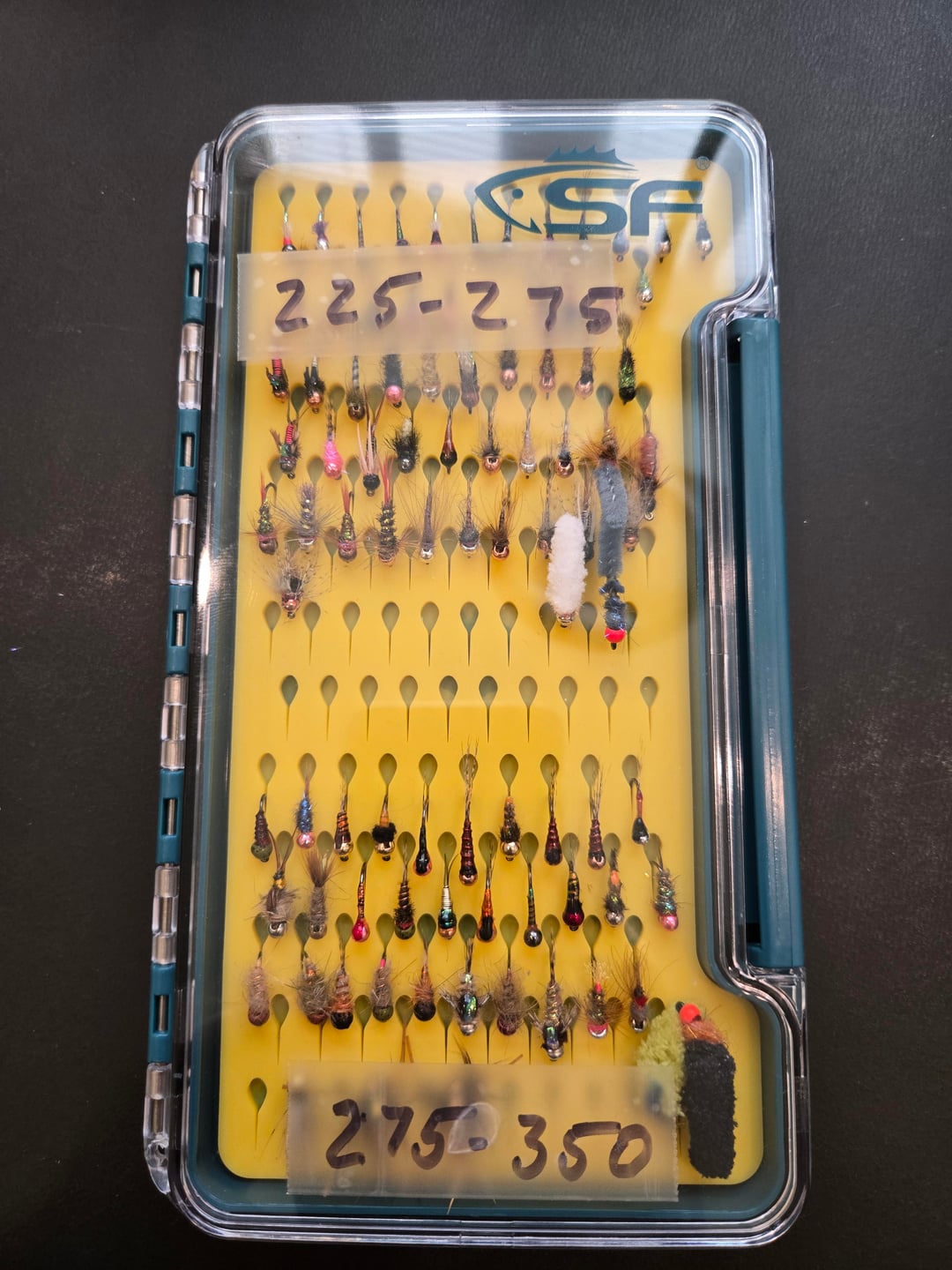 Some of the flies shown: midge, copper john, hare's ear, perdigon, RS2, classic wet, stone, worm, prince.