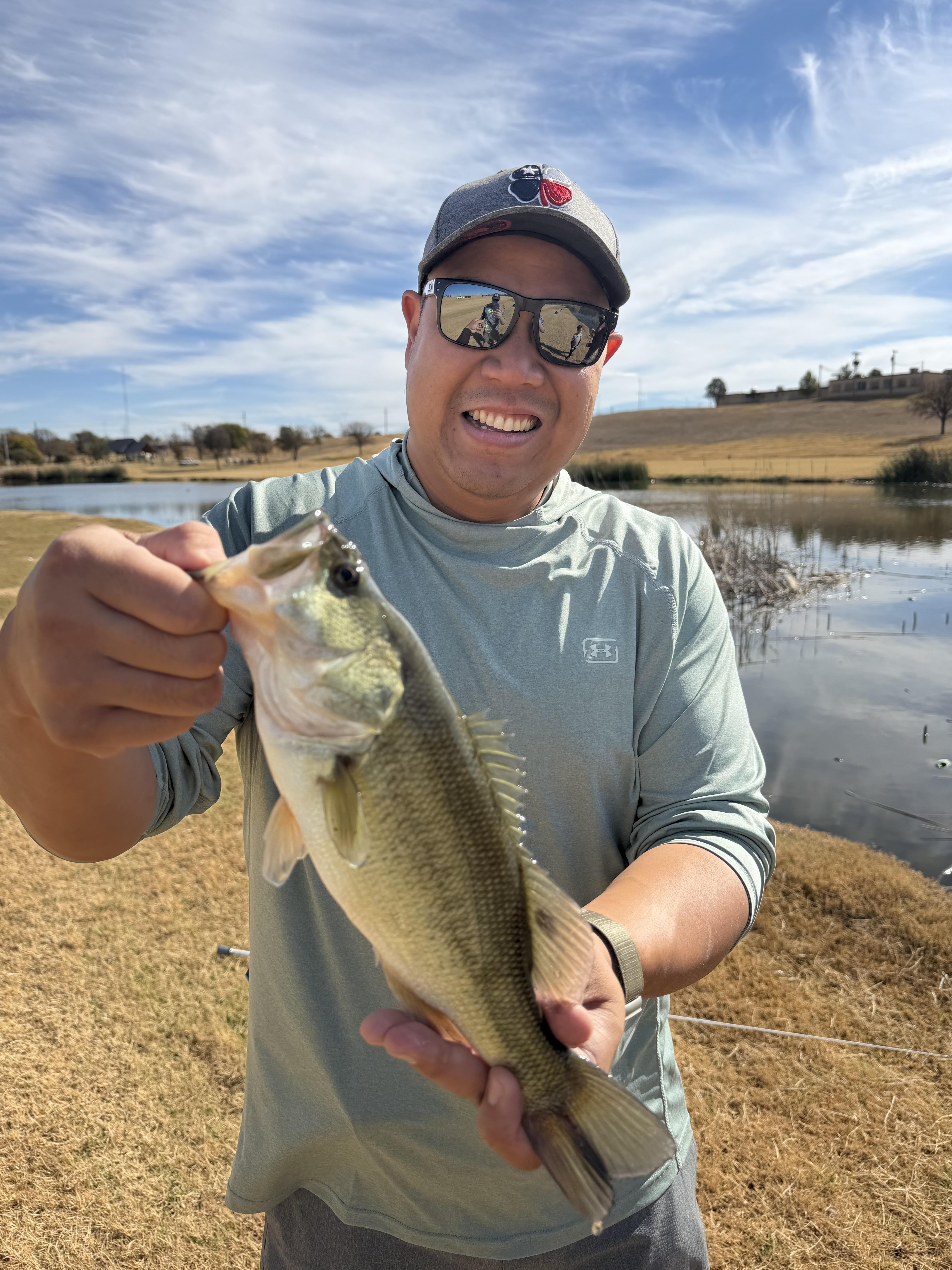 Haven’t fished since I was a teen(I’m 38 now). Buddies got me into bass fishing a few months ago when we were in Dallas for a shooting event. After hours of bites with no fish, caught my first one today! Posted by Ill-Technology7928