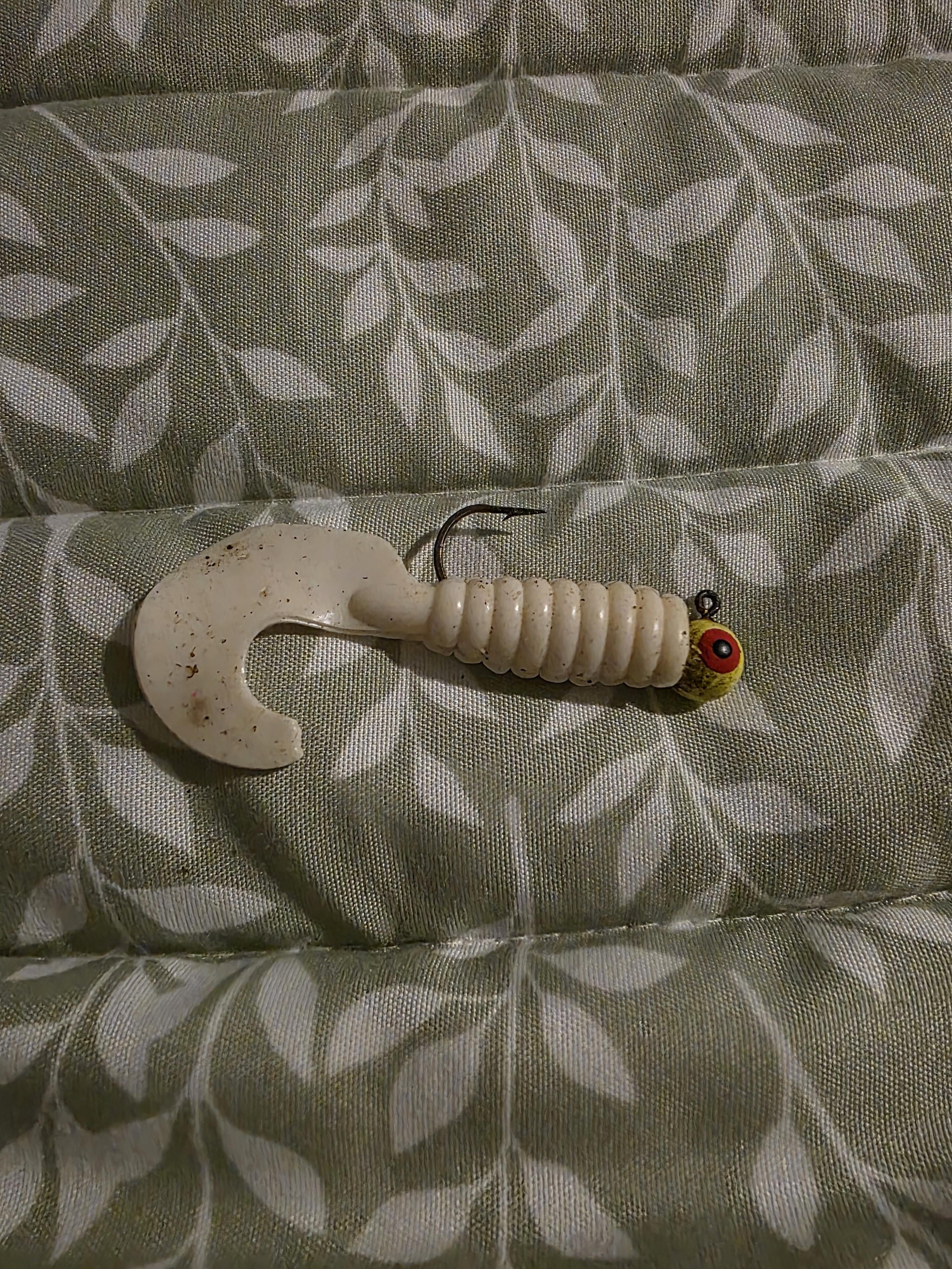 Should the tail be up or down? Never really used plastics before, so I'm not sure. Please ignore the dirty grub and jighead. This stuff is old!