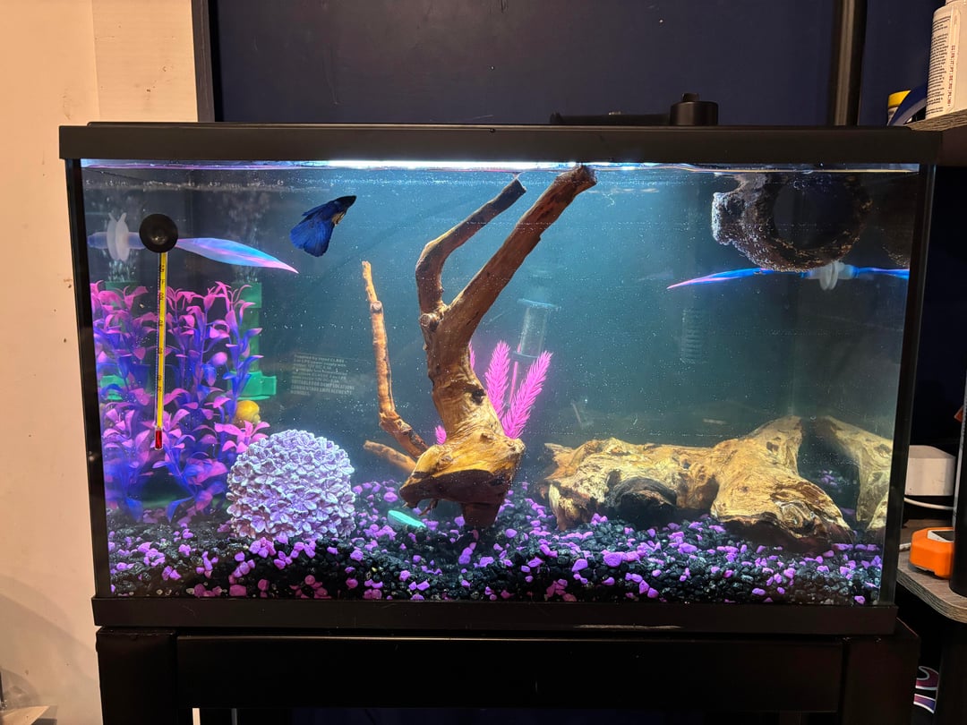 I moved the sponge filter and most of the tank decoration from the old tank. I’ll eventually get some plants to go in there.