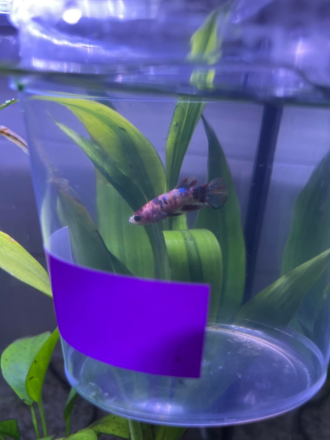 I was very confused when I checked on my fish in the morning and there was what appeared to be a completely different betta. He turned pink and purple overnight.