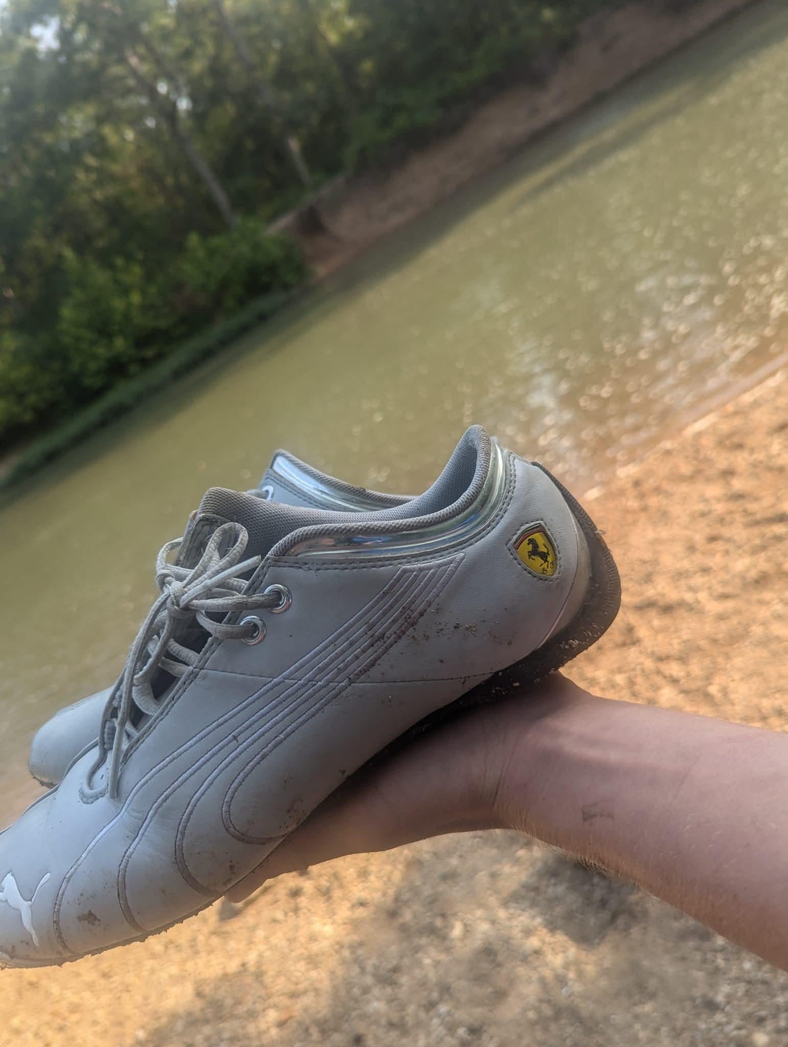 Work boots if I am fishing during my lunch hour, or old tennis shoes.