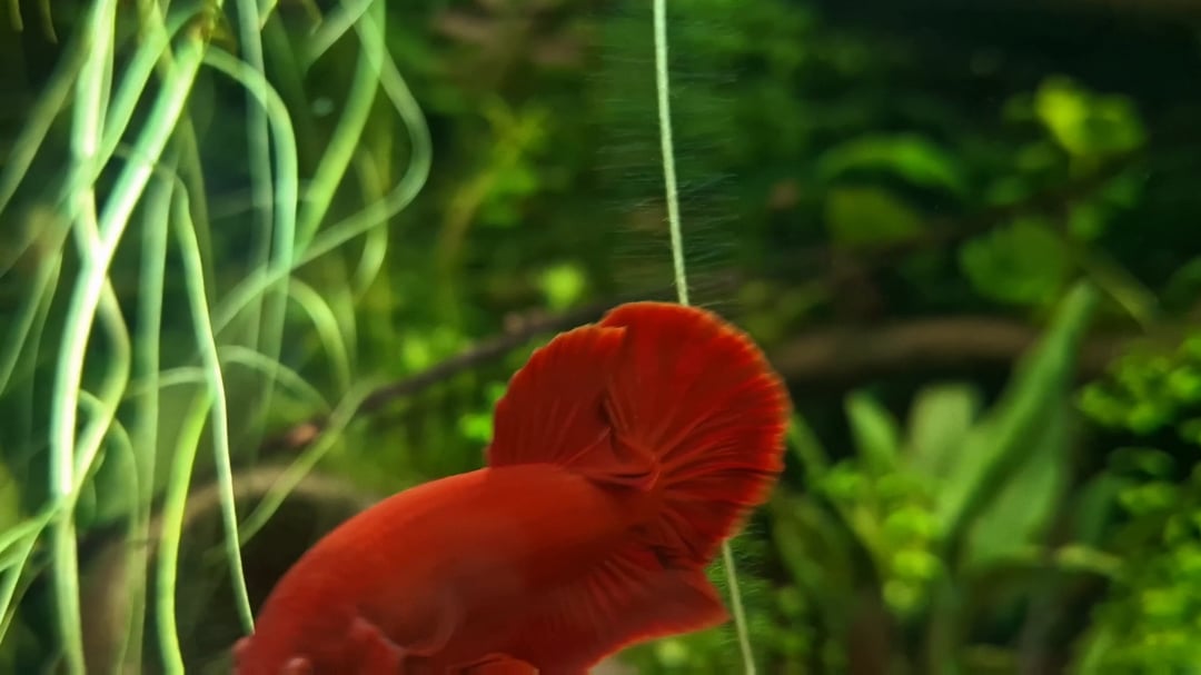 He is very focused on us. Can't say I missed this tbh 😅 I think i prefer the more normal/natural fish behaviours seen in our alien Nandor and the wild bettas. But appearance wise, he is everything I wanted (minus his somewhat arapaima-like head lol). I LOVE solid color bettas like this. Reds especially! And funny enough, he looks exactly like our first ever betta Bibi. Except poor Bibi was a clumsy longfin from a shitty source terrified of his own shadow. 😞 But anyway, with Dante it feels like we've come a full circle and figured out what we want in our bettas and what to stay away from! 🙂