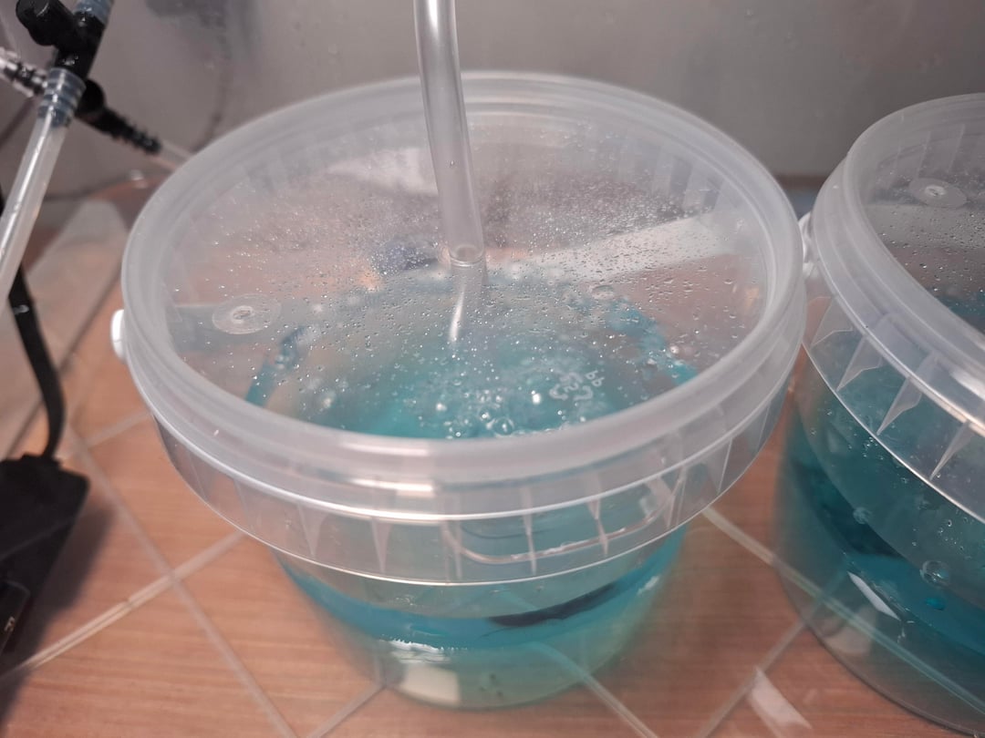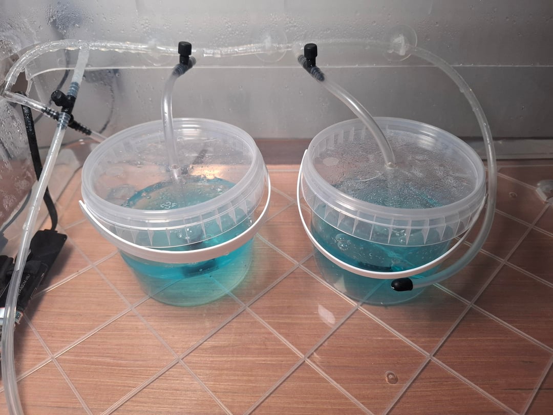 Each line ends with a small airstone inside the cup.