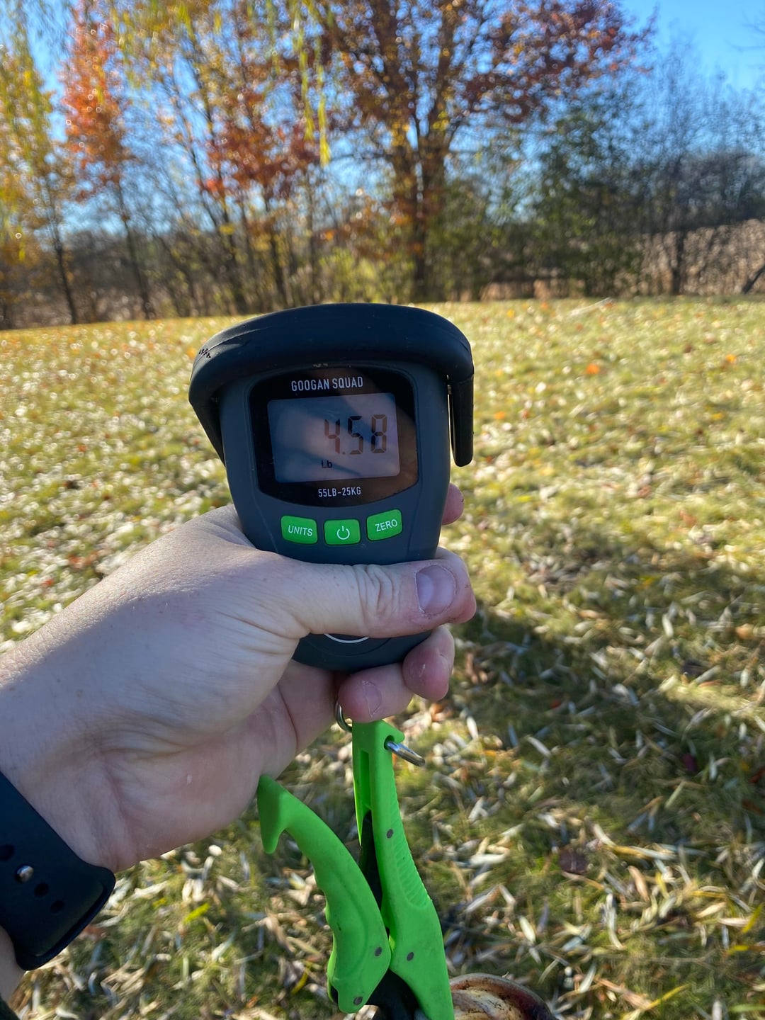 Hit the old neighborhood pond with my son for some fall fishing. Sunday was beautiful out, and was going to be the last nice day before we plunge into the cold. Caught two monsters back to back drifting a crawfish colored chatterbait over a downed log. 4.5# and 4.4#, my 8 year old son for scale on the 4.5# caught 5 minutes apart.