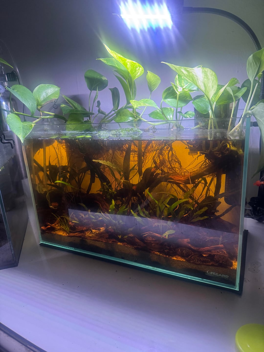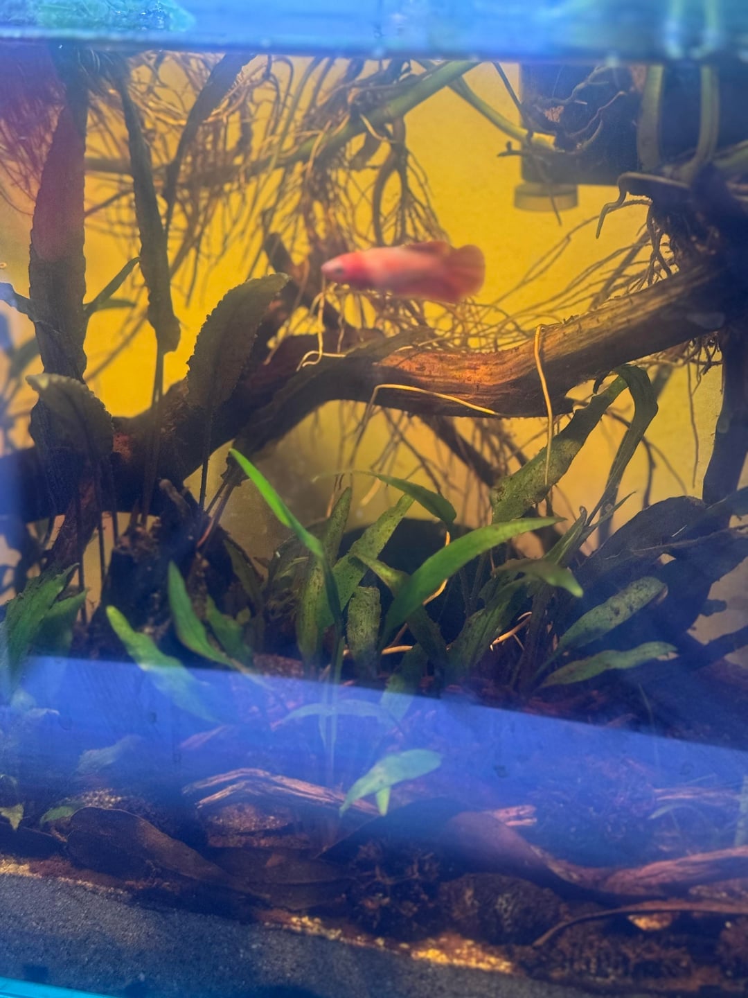 Finally stocked my 5 gallon with my new betta, cinnamon