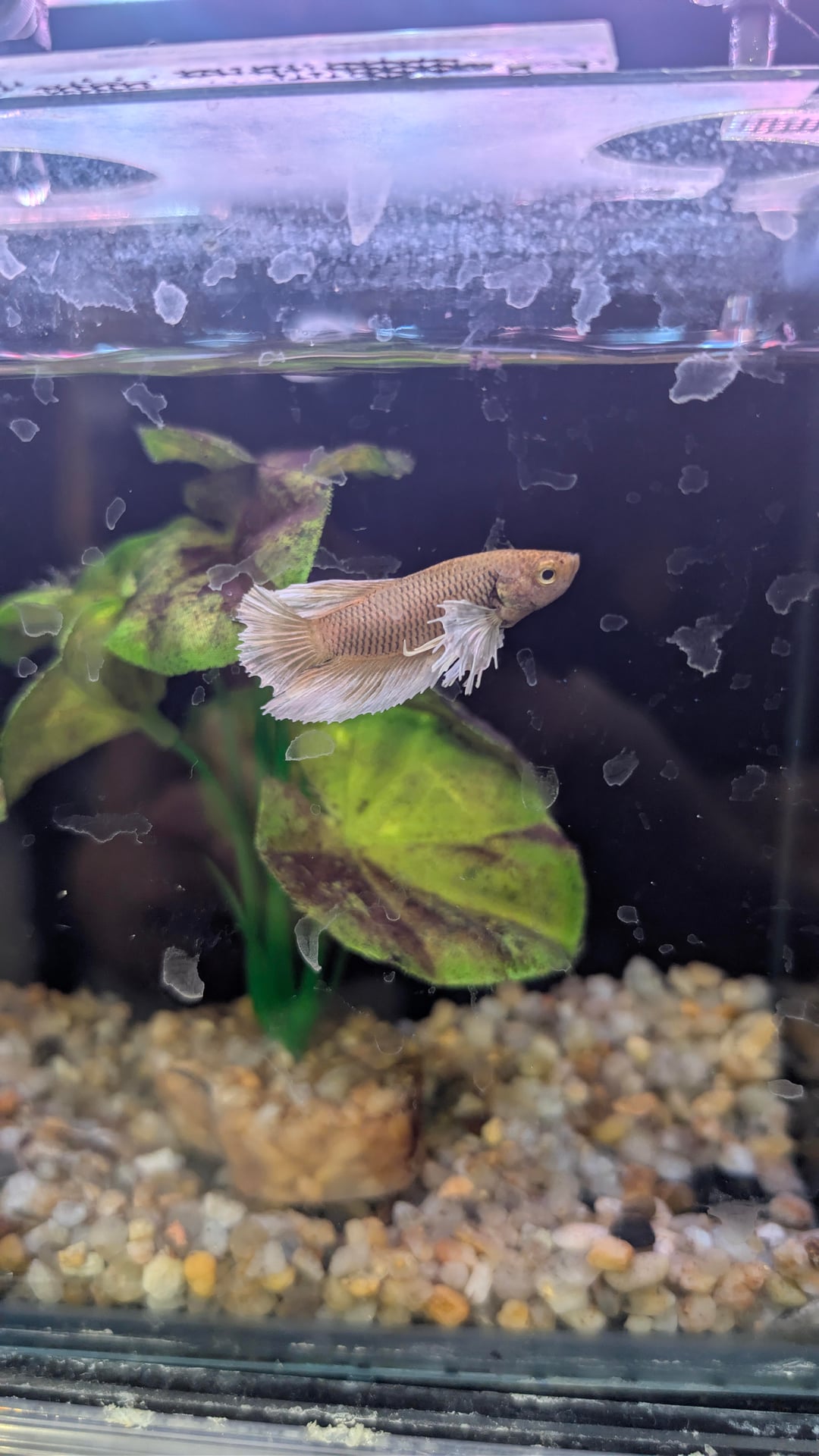 I work at a pet store and a week ago while cleaning the Betta tanks (we look after our fish unlike that one store in America 👀) and I fell in love with this little guy. all the other Bettas were colourful and desirable but this guy just wasn't getting bought and I grew worried about his health living in an 8 gallon tank.
