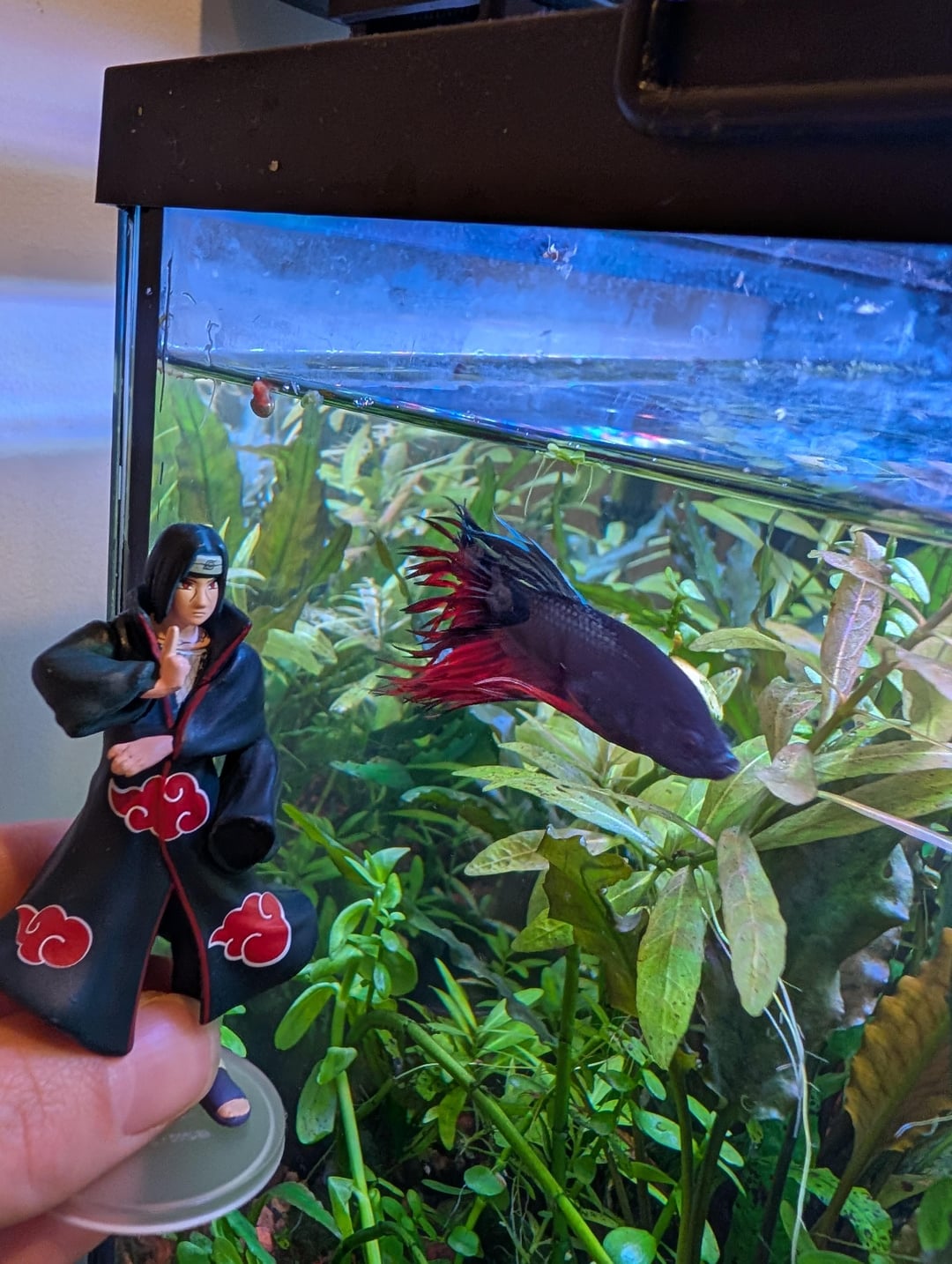 I got a mystery Naruto figure pack this weekend and pulled Itachi and also got a new fish which happens to be the same colour scheme so decided to name him Itachi as well! https://www.reddit.com/gallery/1p6h1nr Posted by No-Aspect1954