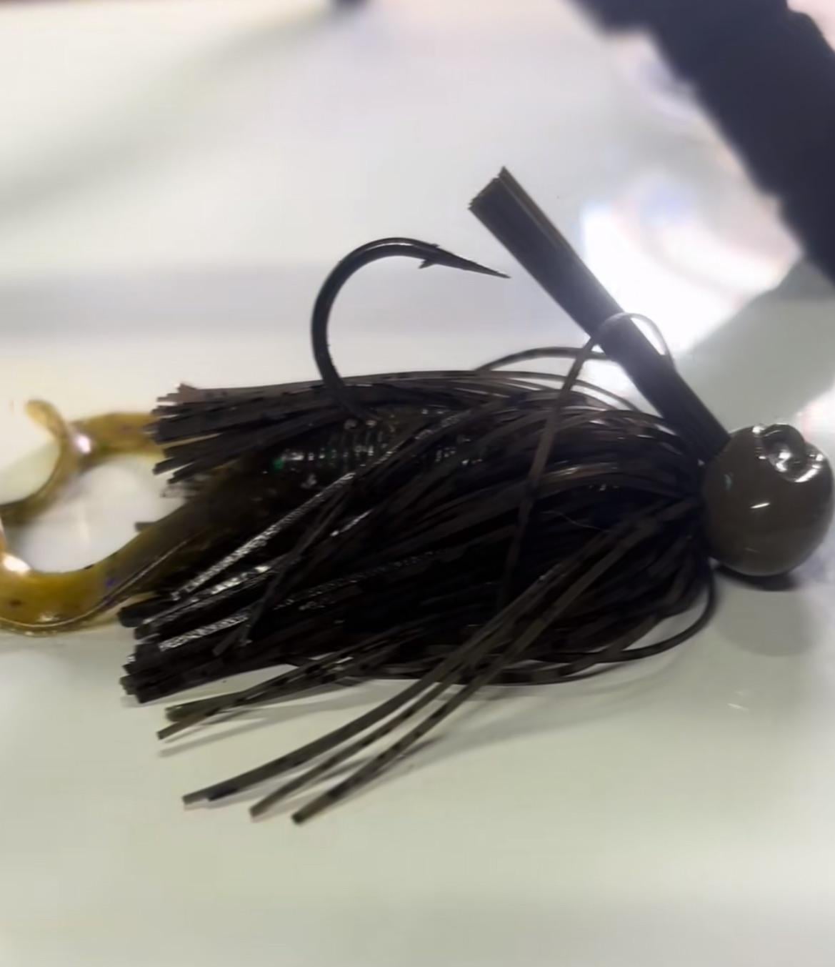 RangeScrapper81 on November 25, 2025 8:16 pm Looks like a weedless football head jig with skirt with some kind of craw trailer