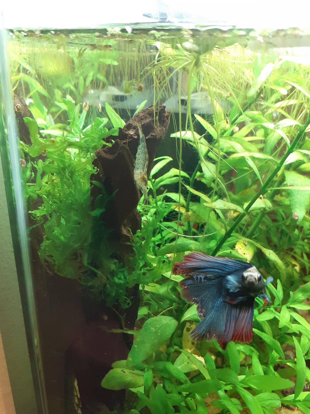 Water temp: 27°C, 20l tank, 1/3 water change every week, filter and heater, life plants, tank mates are a rabbit snail and 2 amano shrimps (originally 3 but one wanted to see the world and left the tank). Alder Cones are added to the water, Parameters are all stable and in the normal range.