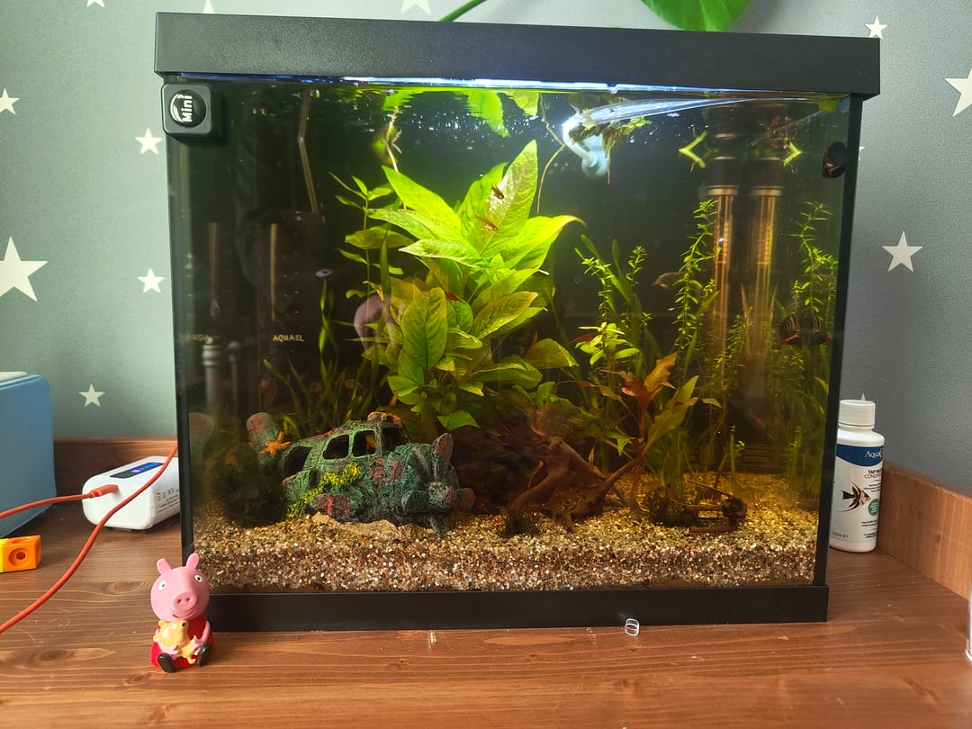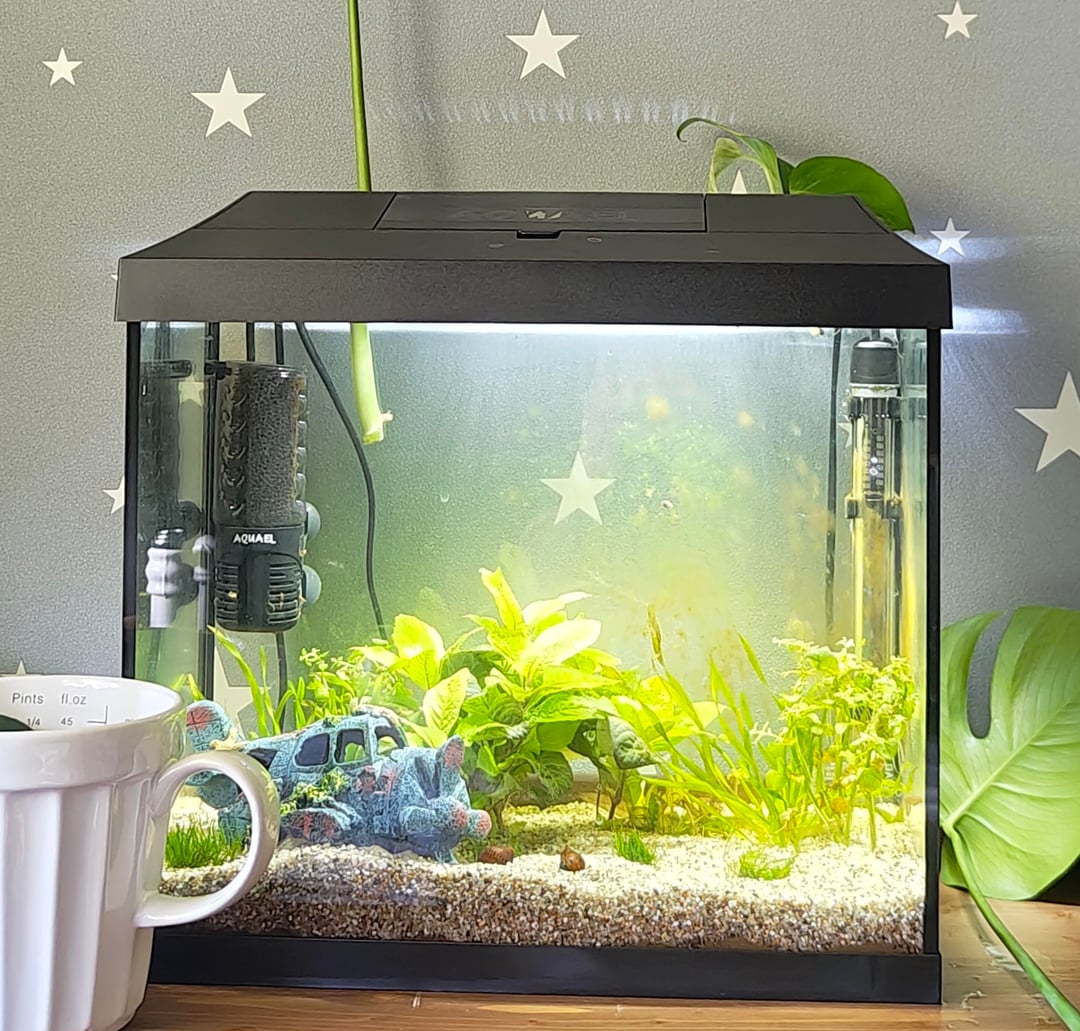 Set this tank up for my son for his birthday today is 1 month since I planted the plants and stocked the tank Posted by 0016284