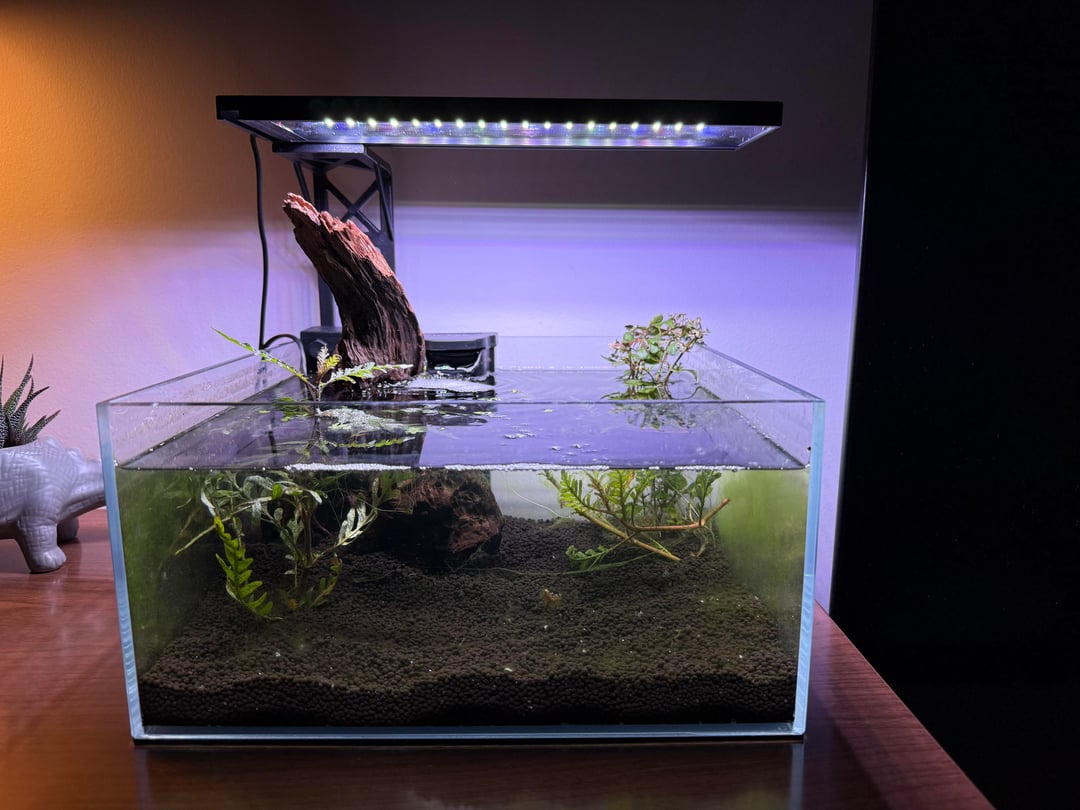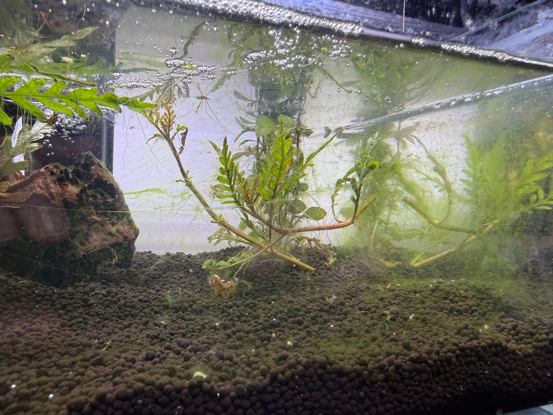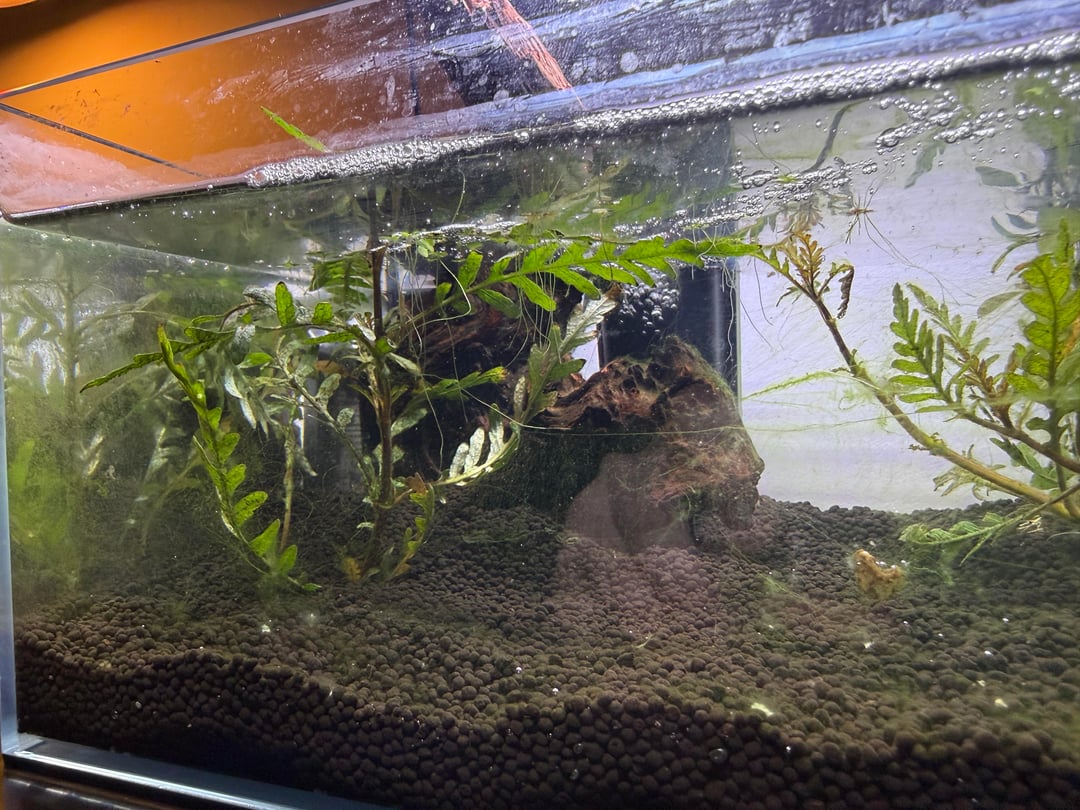 As far as water, I started it with tap water/ prime, and have been doing 25% water changes regularly and diluting with distilled water to hopefully reduce the food for the algae. Nitrates and nitrites are both at 0. I’ve never had this problem before. Any advice ?