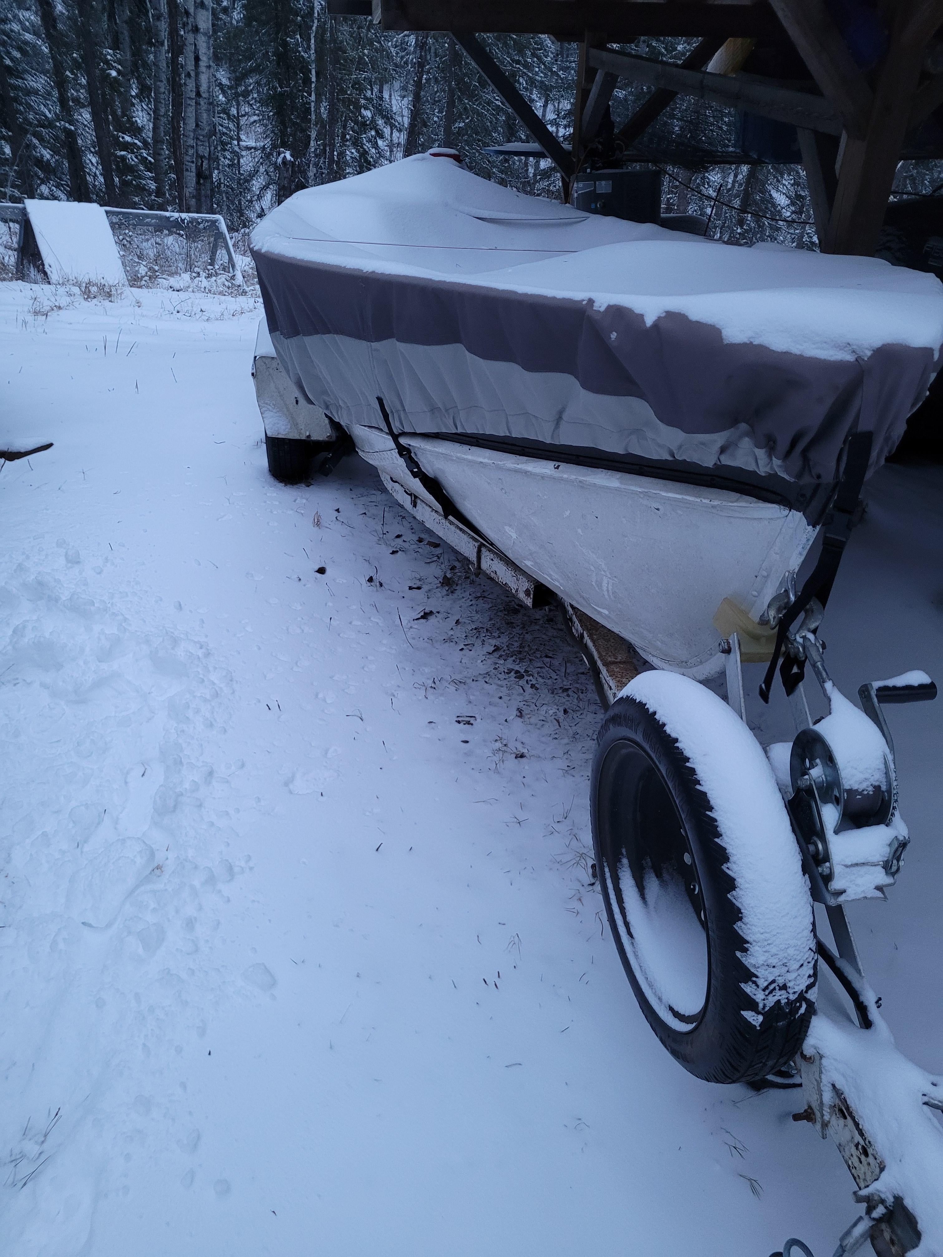 First year with a boat, what do I do with it on the winter? I parked it half under cover knowing it would still get snow, but hopefully less! The cover seems more a pain then anything as collects rainwater and now snow. Don't have a ton of room to build a seperate roof, don't really want to talk the boat off each year and flip it. What do people do in snow country?