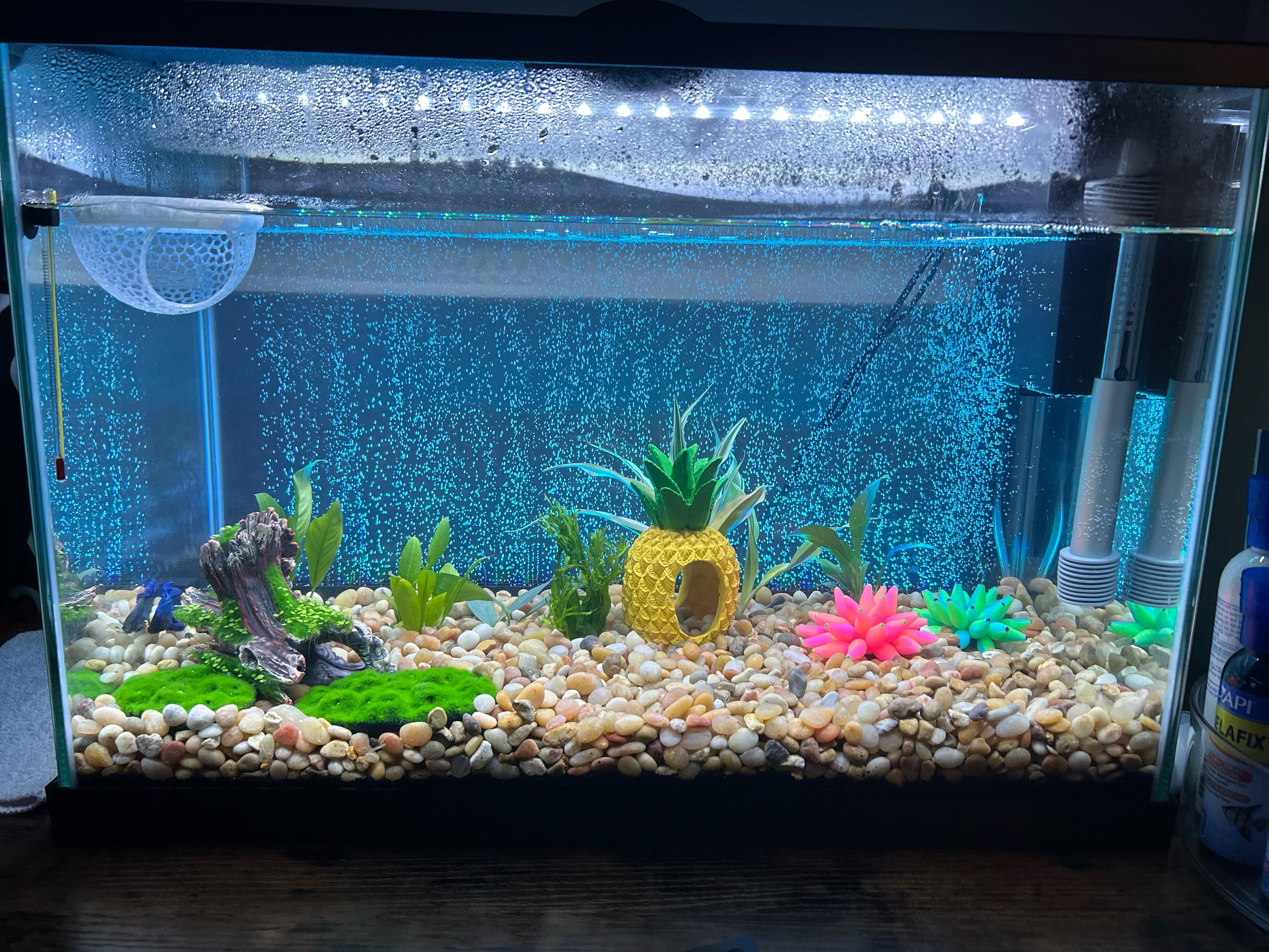 1. Try some live plants, they’re a game changer and becareful that the plastic decor dont have any sharp edges :)!