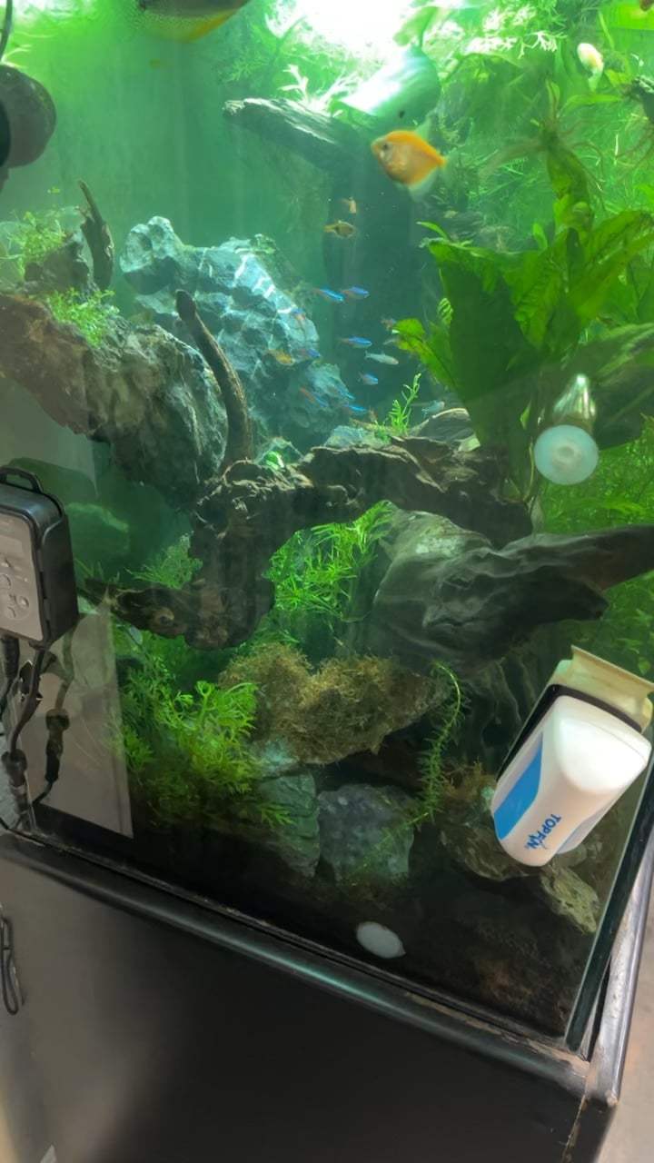 This is around month 4 of my first planted tank and water sprite has completely taken over the tank tbh and I can’t tell if I love it or not. Fish don’t seem to mind and nitrates have dropped to 0 despite no water changes. I have also had 0 success with Monte Carlo which is really disappointing because I love how it looks. Any pointers to make the tank more appealing or how to properly grow Monte Carlo in a tank like this would be appreciated. I’ve been thinking of adding more red plants but I am worried of lessening the swim room. Thanks for reading and happy thanksgiving!