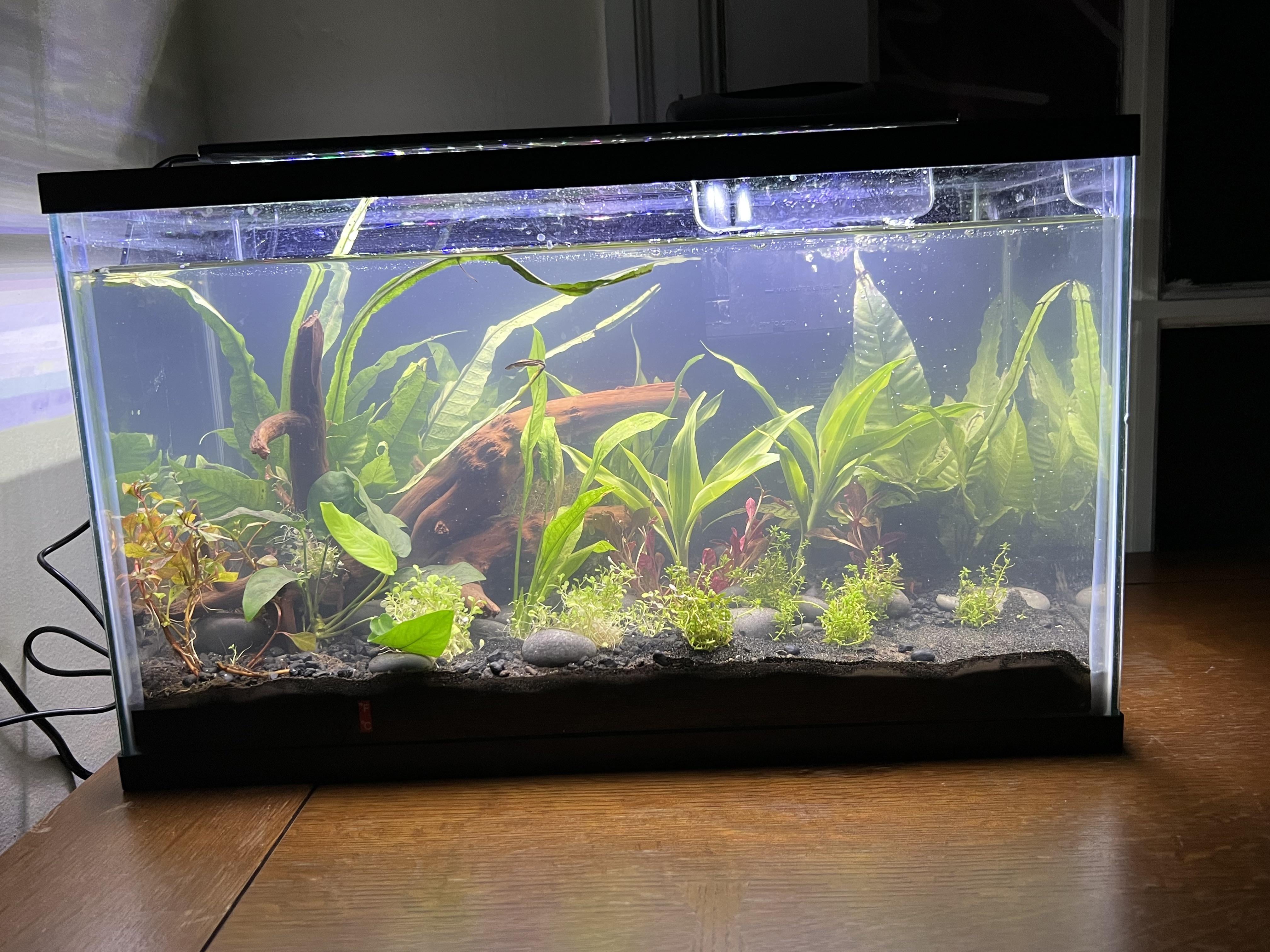 I’m just asking again because there’s so much mixed information. I have a 20 gallon planted tank that image is of my 10 gallon that turns out it’s leaking so I’m going to just move it to a 20 gallon bc I realized it’s not as big as I was hoping when setting up the plants and drift wood. No fish in it yet but my primary goal is a betta fish and I will work everything else around that. I have a few ideas and I hear a lot of things so I wanna what more experienced people think since this is also my first tank.