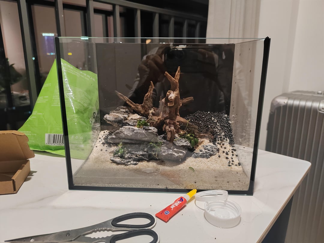 Thinking on how to combine these small pieces together was my fav part. I used a aquarium safe glue to connect them. I am really satisfied with the result:)