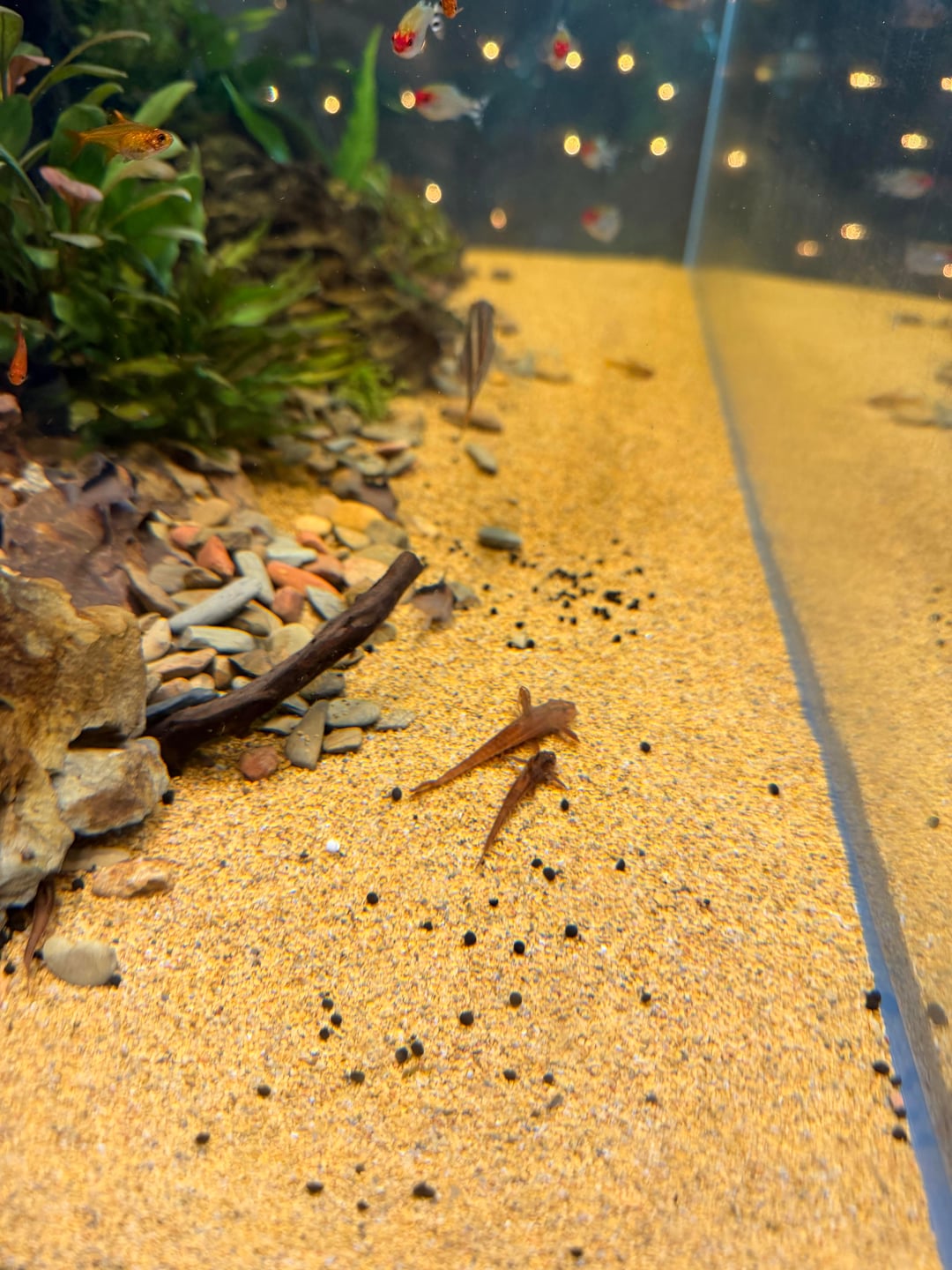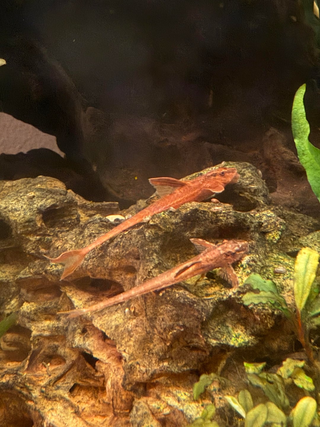 I have 3 red lizard whiptail catfish in my 75 gallon and they’re some of my favorites to see out and about. Was funny to see the biggest one out with the smallest one. Posted by FalcoTeeth