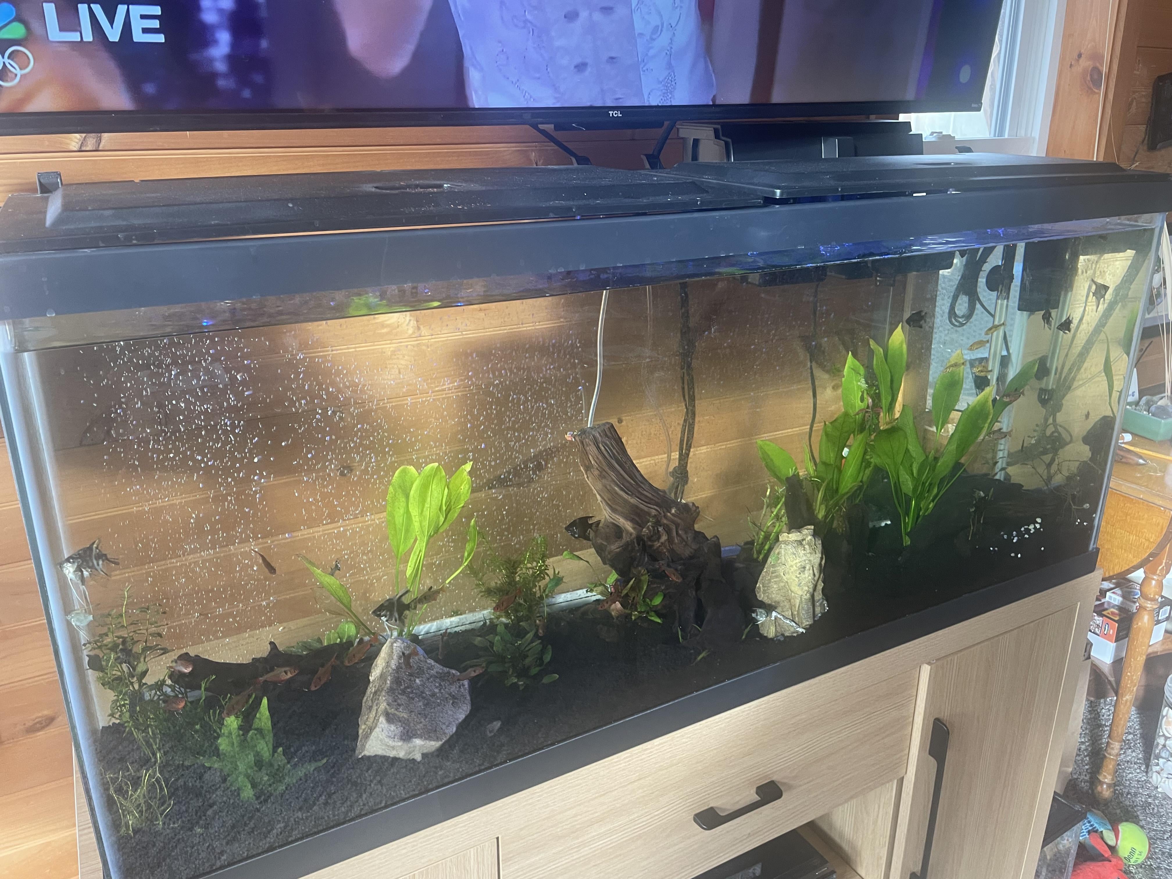 Visiting my grandfathers house, I know absolutely nothing about aquarium and neither does he. Says he feeds them 2 pinches a day, and the LEDS turn off at night. He’s had them 3 weeks without any deaths but I wanted to make sure nothing was going to go wrong.