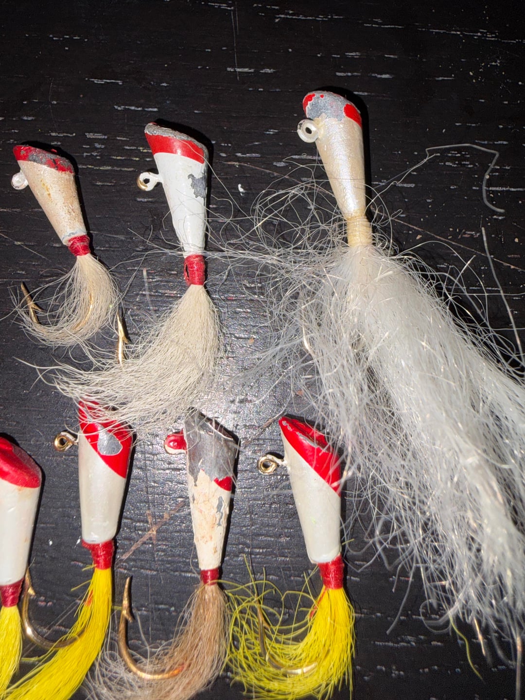 1. 1)Those jigs are called “Shad Darts” and are amazing, got 4 of em from my grandfather years ago and ive been addicted ever since. Theyre made for shad(obviously) but are great for many smaller species.
