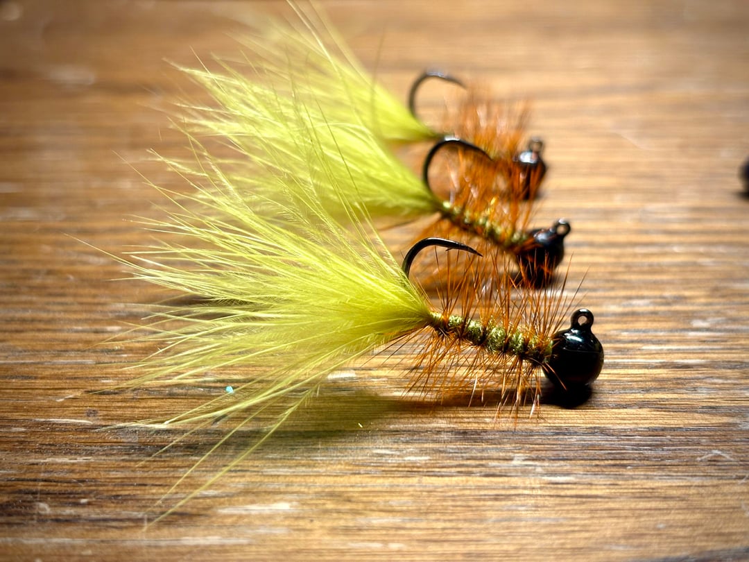 I whipped up some 1/16 oz trout jigs. The ones on the left are “wooly buggers” and some craws on the right. Both are inspired by productive patterns I use with a fly rod. But these are going to be fished under a float on a spinning rod, similar to steelhead techniques.