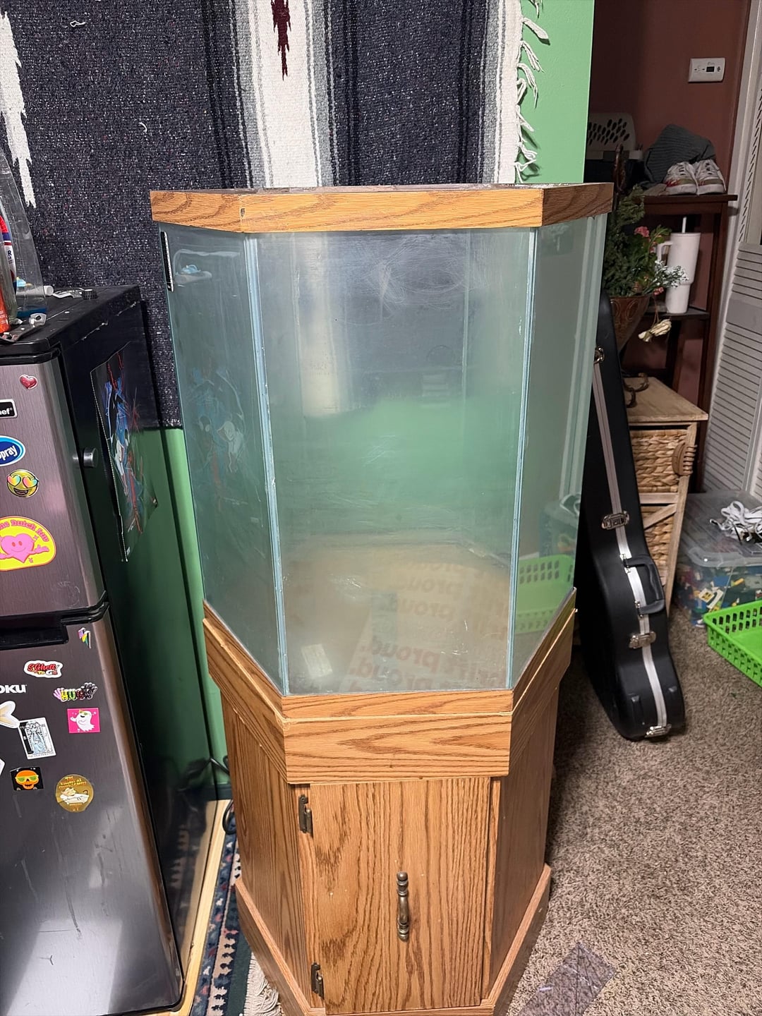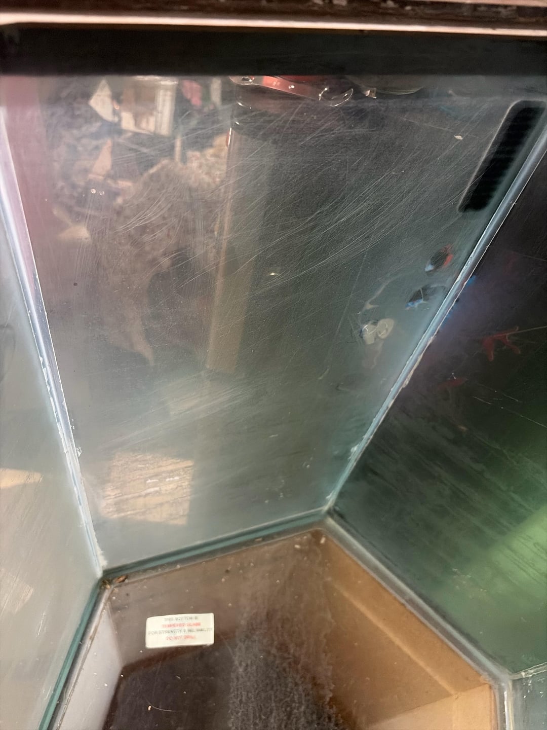 I picked up this hexagon tank and stand for free on FB, but the glass seems way more faded than on the listing. Is there any way I can clear up the haze? I’ve tried window cleaner and isopropyl alcohol, but I get paid in a few days to grab anything that I can try out. Any advice is appreciated 🫡