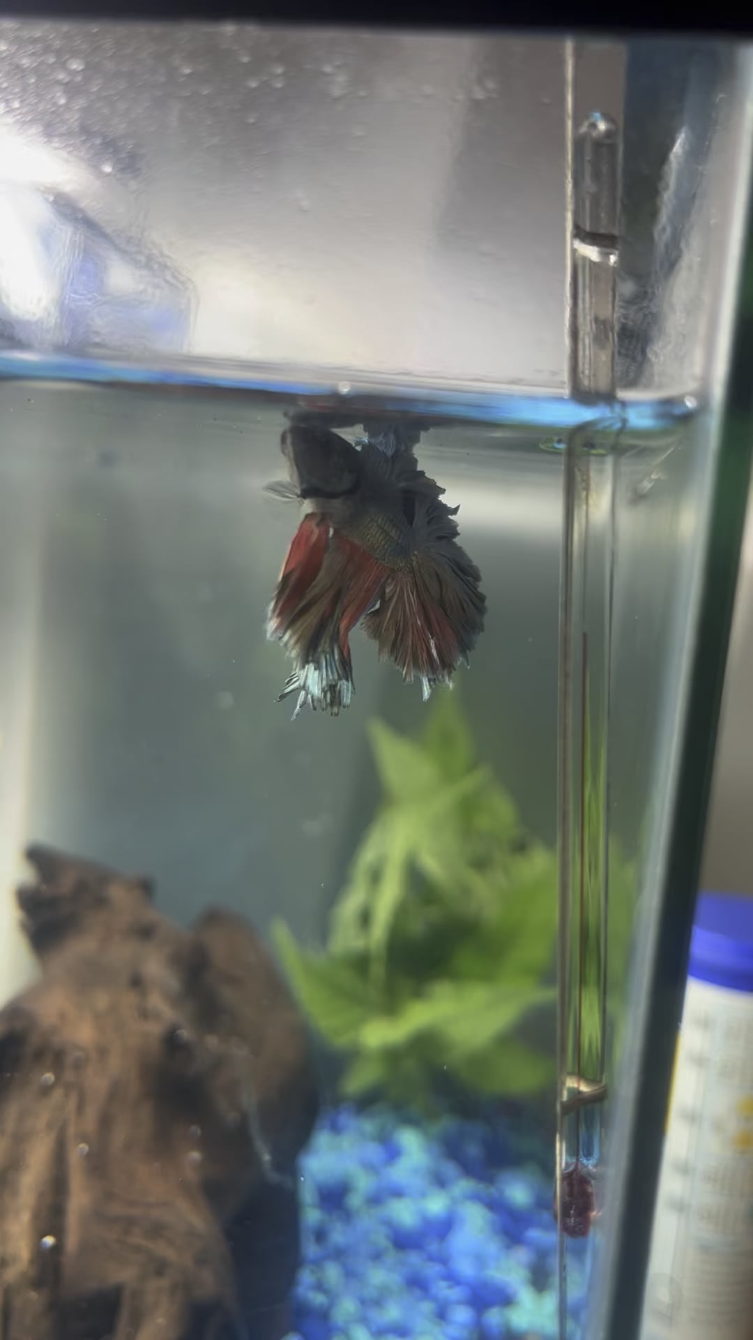 Maybe turn the flow down a little or get one of those floating logs. Otherwise you’re doing an amazing job nd I think you’ll both be fine!! I’ll keep him in my prayers 🙏