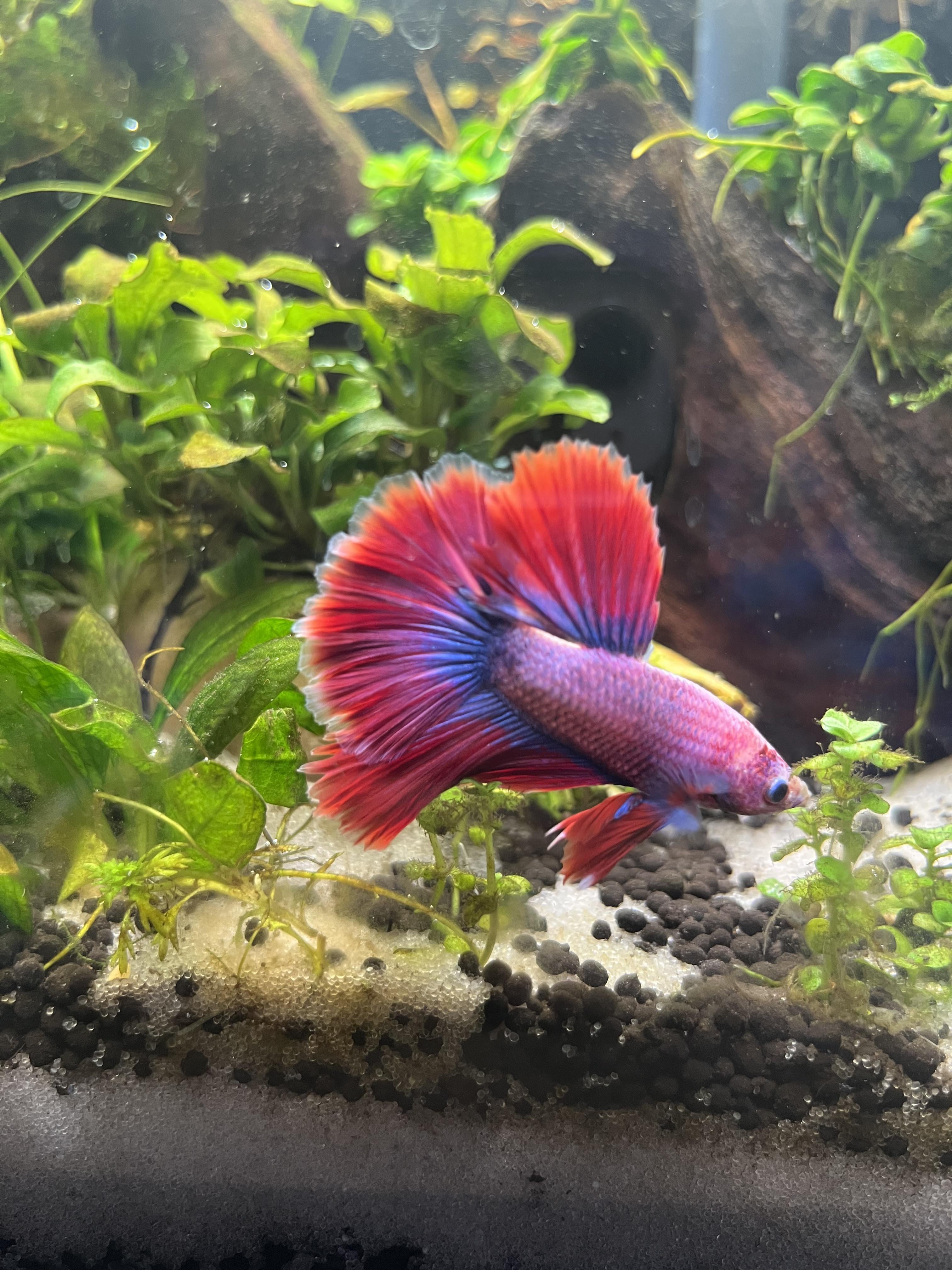Hello! This is my first betta fish, and I’m wondering if there is a technical name for his colouring? I’m also curious if he’s considered a super delta? He was sold to me as such, but I have a hard time eyeballing the degree of width of his tail fin. Thank you!