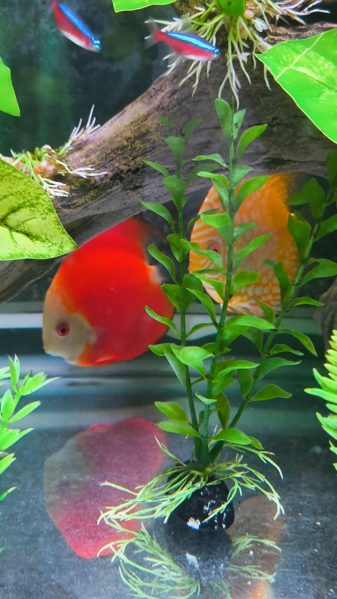 I introduced three discus fish to my tank a while ago, and they look truly amazing! The water parameters are perfect, as always (♥️🙏).