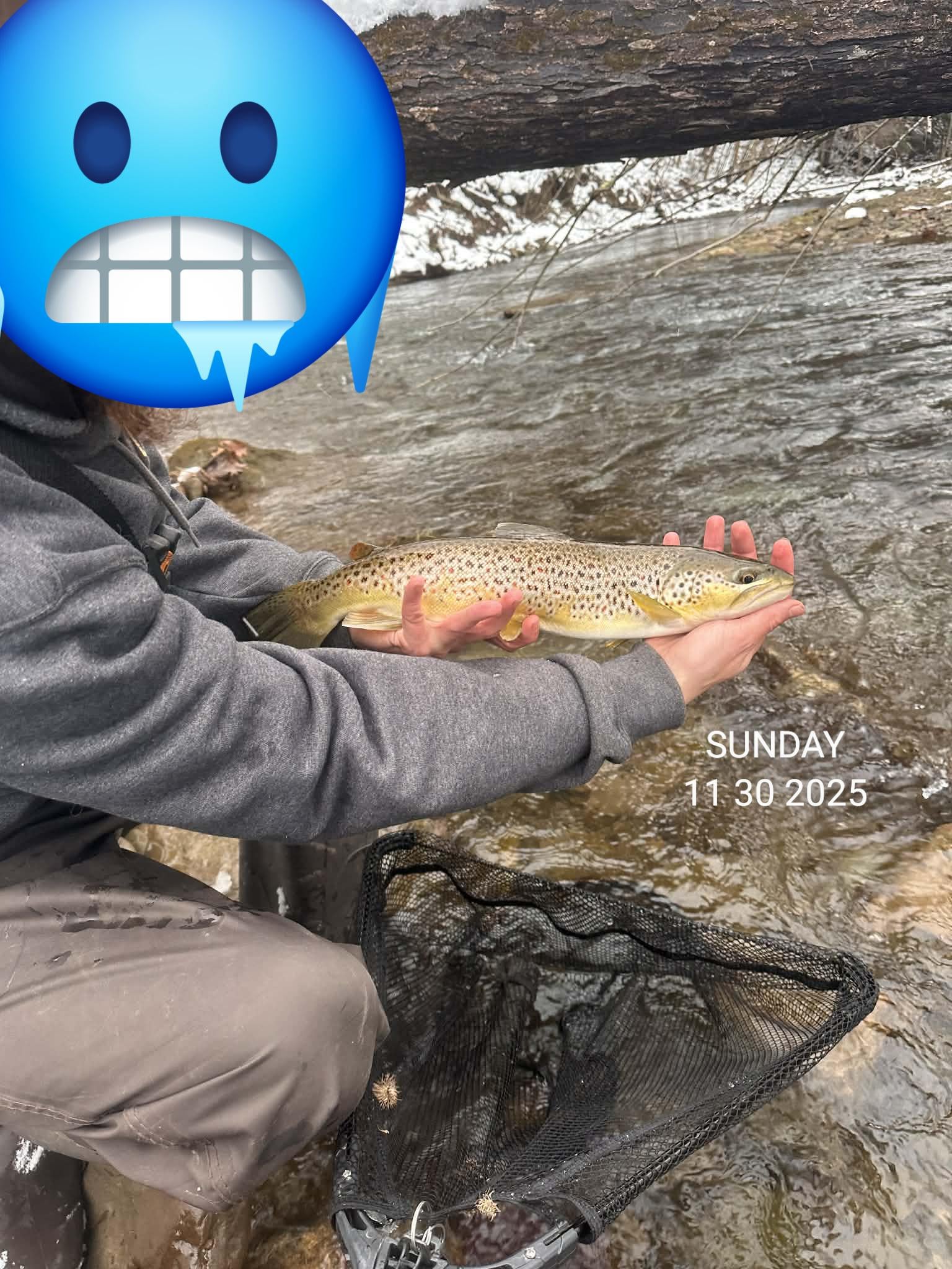 Took a fishing buddy up a creek to teach him how to fish winter browns. Only 1 to the net with a 6 mile walk but thats how winter goes.
