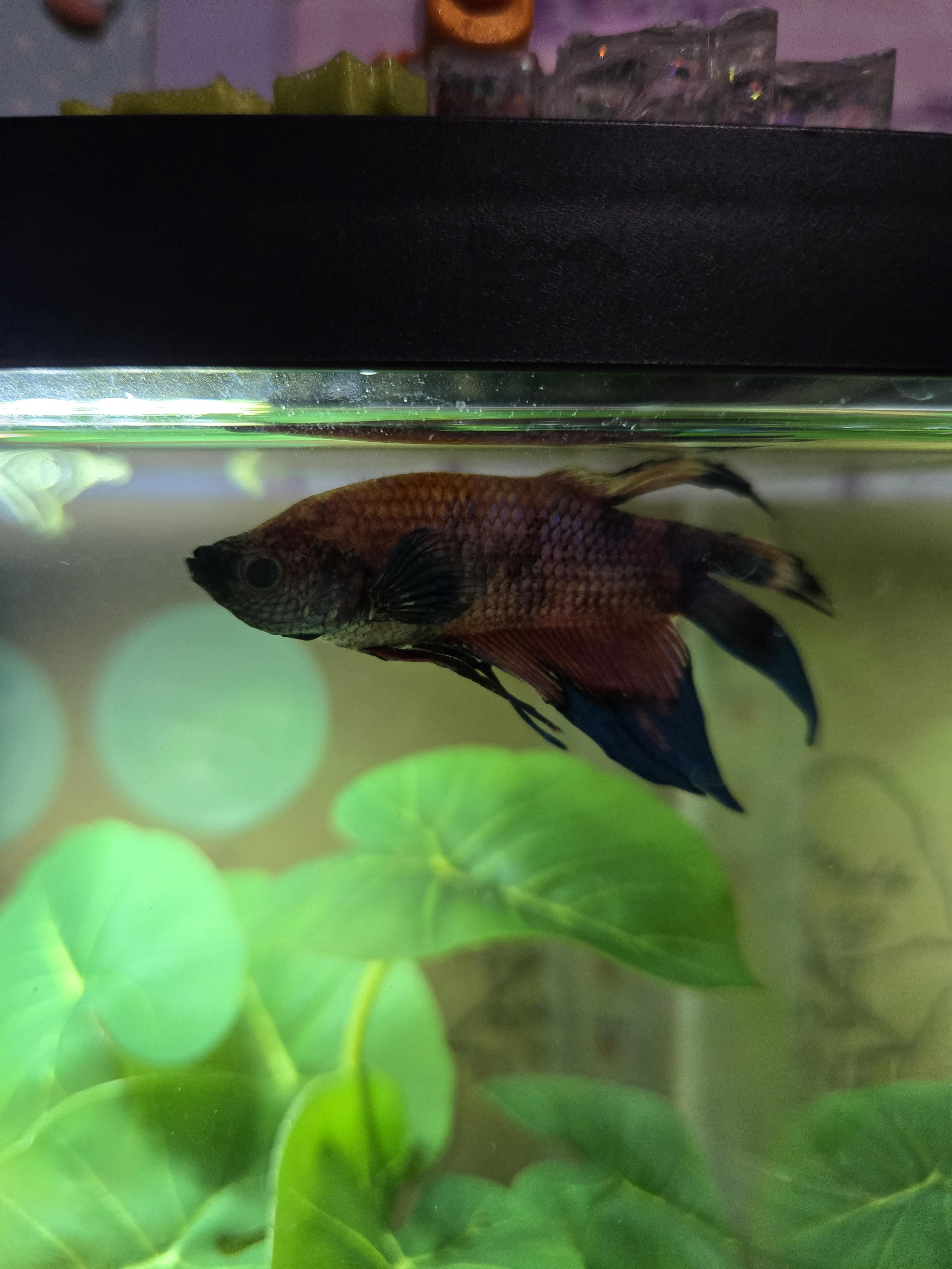 How old? Not to sound funny but he has the “old man declining and nothing will help” look. Like nothing is wrong , things just start to fail and colors fade as they are approaching the last 4 months of life I have noticed (and only in my males…. Not my females ever oddly….) The color fade of an aging betta is wild, it’s sad but natural. If you aren’t experiencing any other concerns and he’s at least 2…. From this image and the info provided I’d say aging.