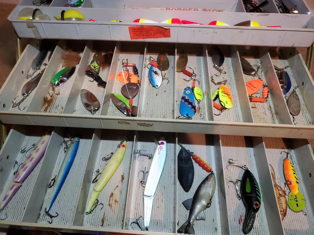 Picked all this up from FB yesterday for $5. Are any of the lures worth keeping sealed? Or does anyone know much about any of these? I was expecting to buy two empty tackle boxes so I'm not sure what all I have here. Posted by Mundane_Medicine_980