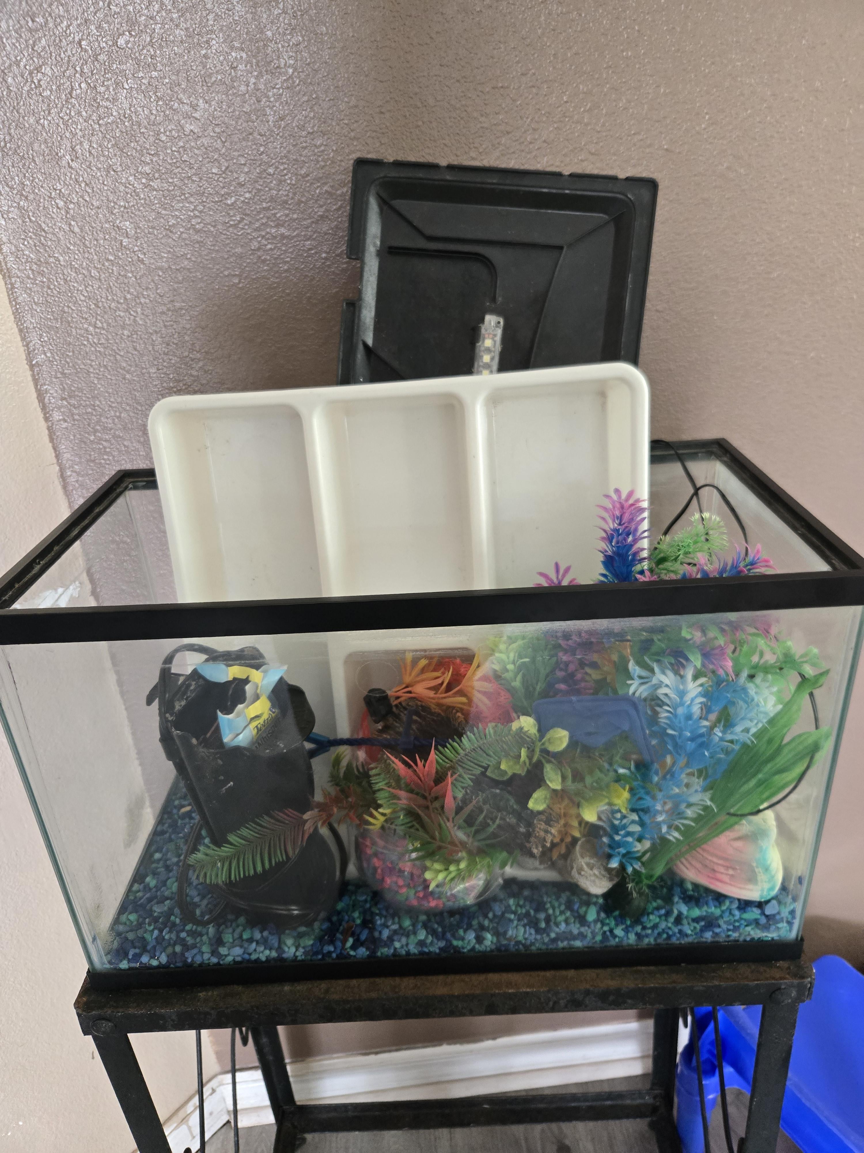 The family that gave it to us said angel fish and algae eaters but those seem way too big for a 10 gallon? Maybe tetras?
