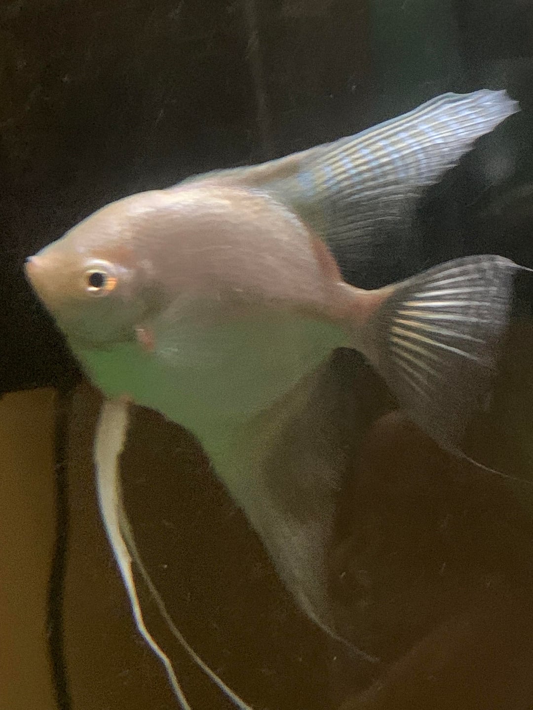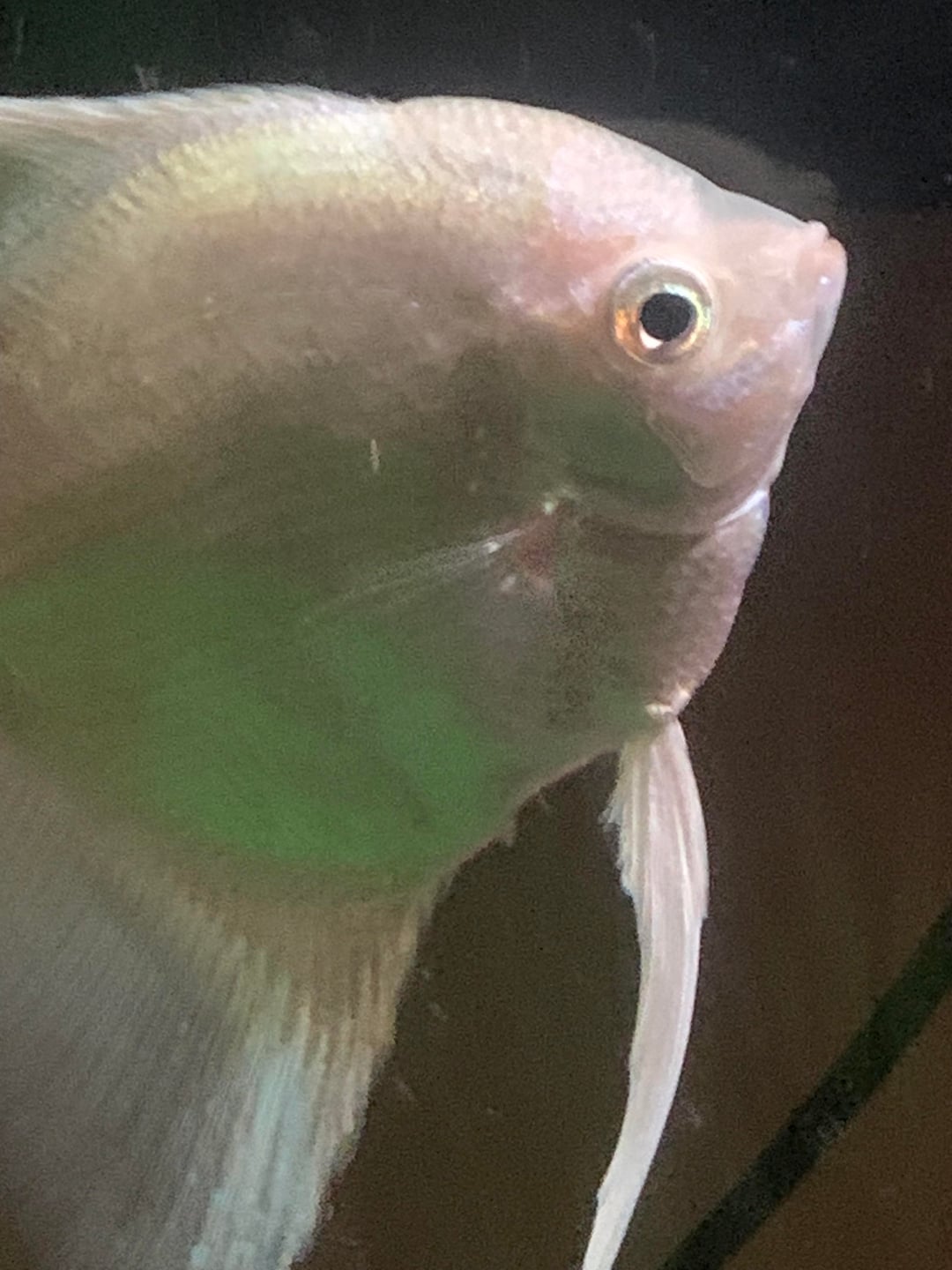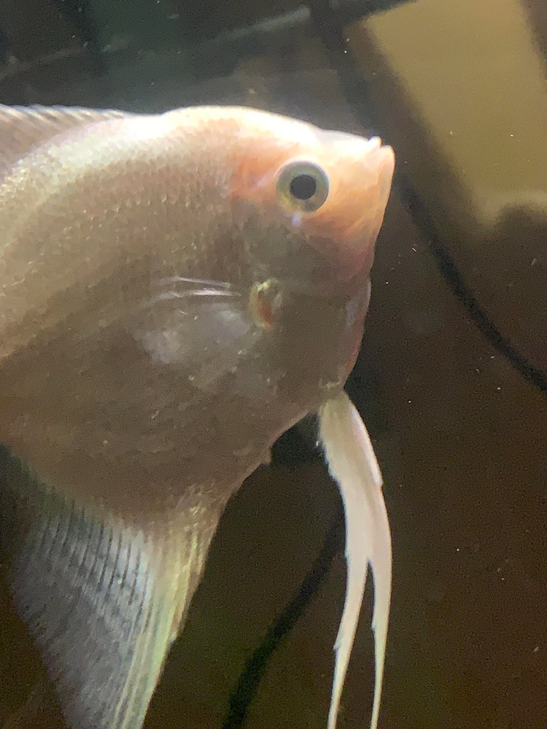 Ive had this platinum angel for almost a year and recently she(?) has developed redness near the base of her pectoral fins about 3 days ago, the left one is noticeably more red while the right one is pink/fleshy (Sorry for low quality pics, she likes to stare at you when you’re close so they had to be taken from a distance) she is the only fish that has this and Im pretty sure it’s not injuries from fighting