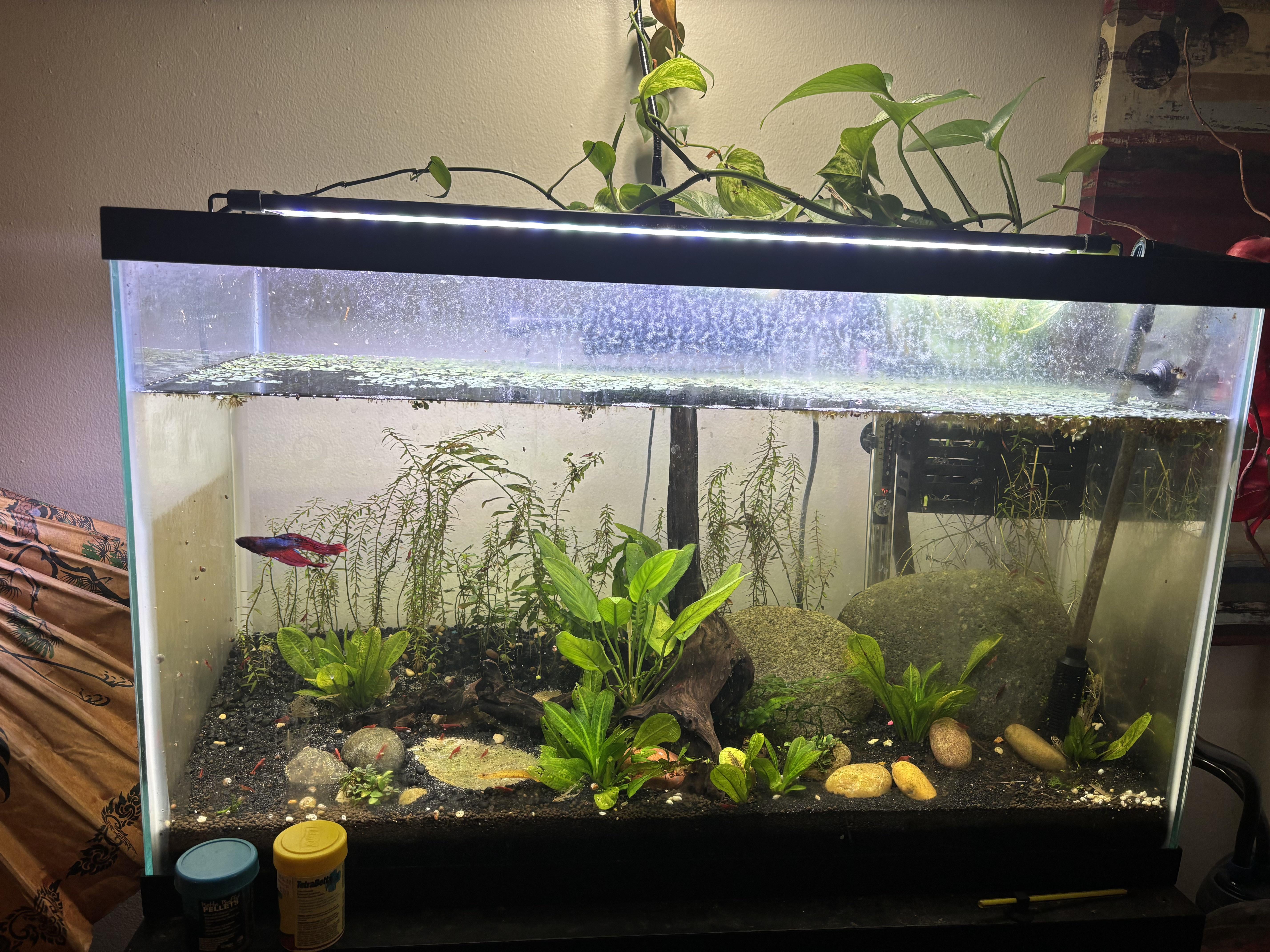 She had him in a .5gal before she moved in with us, immediately moved him to a 5 gallon and once this was ready he got to join the shrimp! https://i.redd.it/h099r12jfp4g1.jpeg Posted by Faerie_Dybbuk