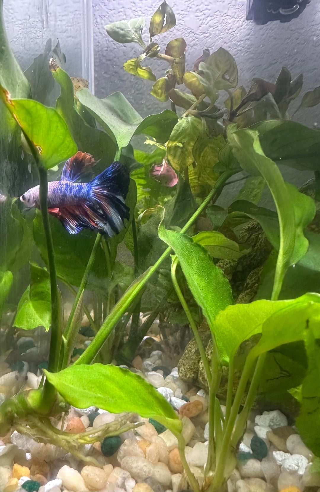 My previous betta, Jupiter, passed away from old age just a few days ago. Naming this one Saturn just felt fitting. 🥲