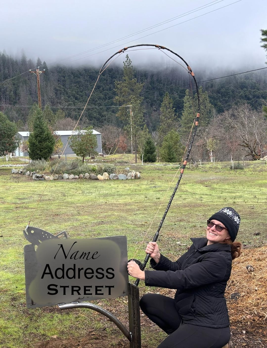 I’m a blacksmith who lives on the Trinity River in Northern California. A neighbor asked if we could make them an address sign with a fly fishing theme, and so this is what we came up with. They asked us to blur their address for privacy.