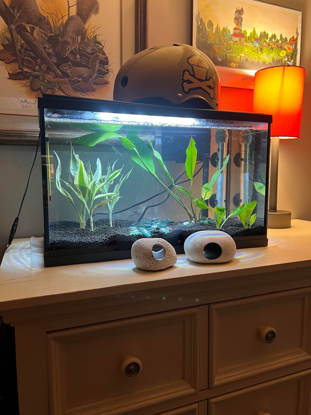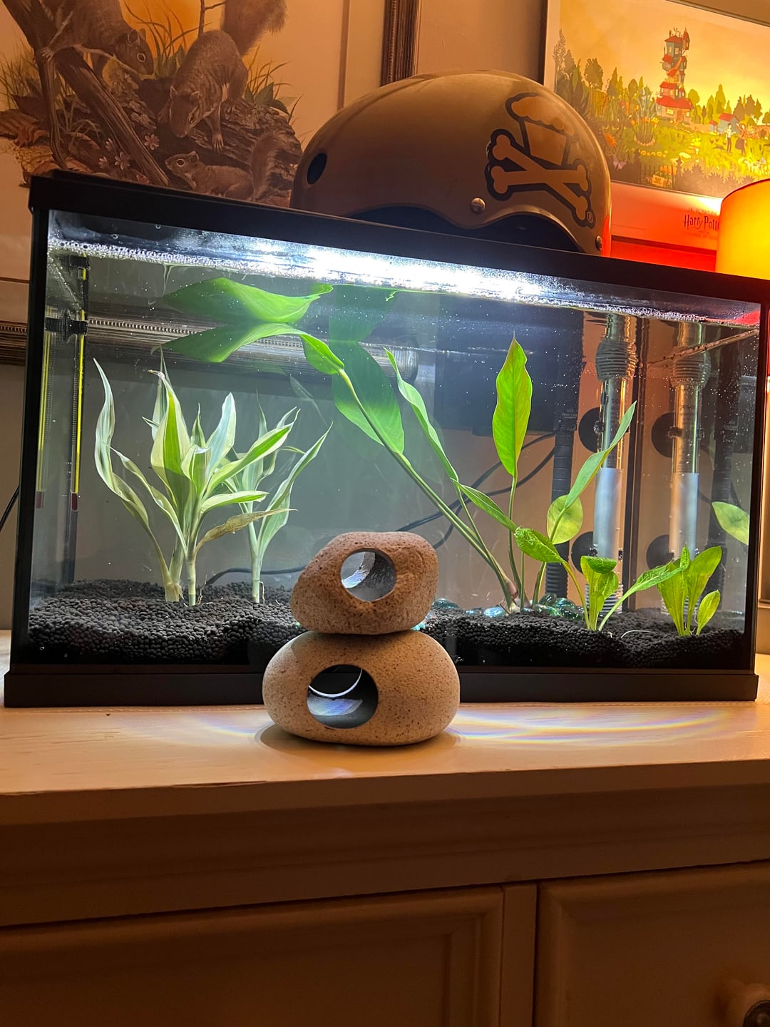 You have to be careful at stores like PetCo and PetSmart because they will put terrarium plants with the aquarium plants. Check the package to make sure it’s aquatic and not semi-aquatic.