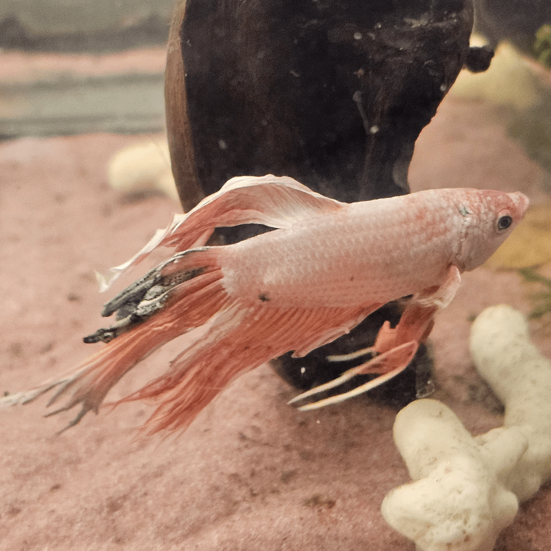 his condition seems to not be improving at all and i dont know why :(( big white ball on front bottom fin, and tail fin is scraggly and blackish. the black dot(s) on the body is new 😭😭😭 comparing to other's images my guy seems real bad, is it even fin rot, or something else worse?? he's always been a bit disheveled looking but seemingly content in every other aspect. i really dont know what happened and what to do at this point and am desperate for some insight and answers please. should i do another round or just finish up the treatment and move him back into his bigger home so he can at least live the rest of his life there and not the little one because im sure that doesn't help his stress either (he's chillin but still) please help, i love my little guy and want to do right by him…