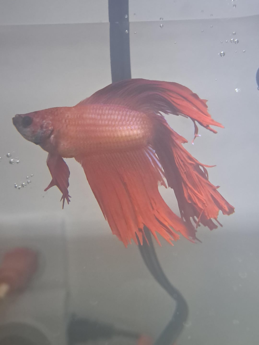 I spent $160 so far in getting a decent setup for the fish. I read through the care guide bookmark from this sub. It's in a 5.5 gallon tank with a working heater at 76.5 degrees Fahrenheit- with a digital and old school thermometer attached. I have a filter on gentle setting. Will be getting air pump with tubing and rock this week. I have brine shrimp, fluval bug bites, and sera betta granules so far for food. I have Seachem prime and stability and made sure to test the water multiple times before acclimating. I will be getting more plant decor – silk fake ones – for better hiding when my next paycheck comes. Its fins look damaged, so I ordered bettafix that will be here Tuesday. I bought a gravel vacuum too.