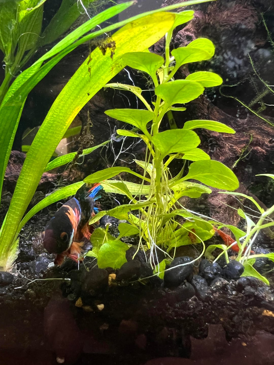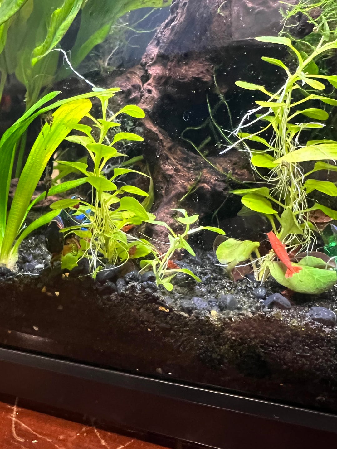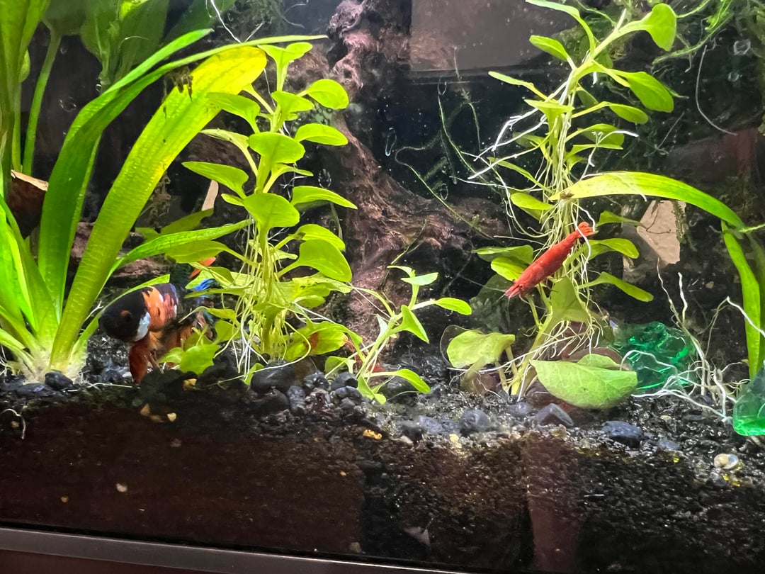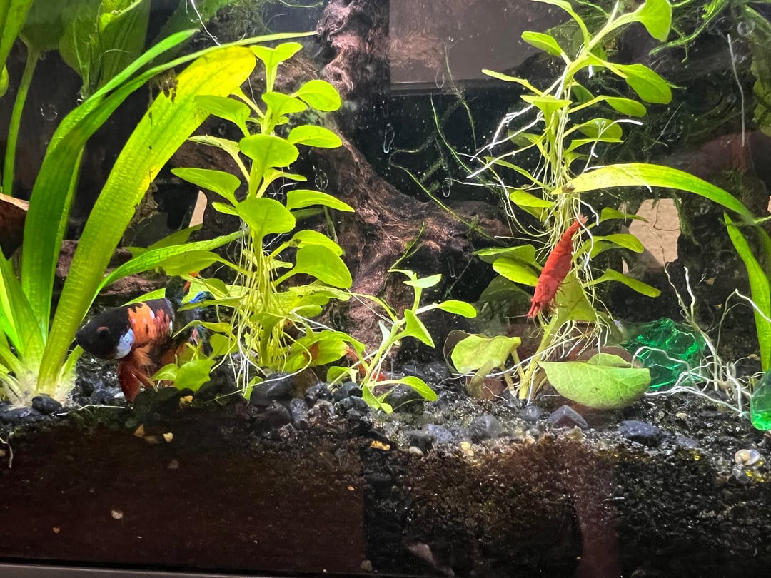 I just fed my shrimpies and dropped a bunch of bloodworms and pellets. My boy has finally stopped eating their pellets since I’ve got him new food he reeeally likes. He likes to investigate because I believe he smells it but doesn’t go for it anymore. I managed to catch him jut resting at the bottom chilling with them. All ages of shrimpies here except the tiny transparent babies, they hide in the moss. Just wanted to share!!! All bettas are different but I feel like I got lucky since he’s short finned. I love my boy. ❤️