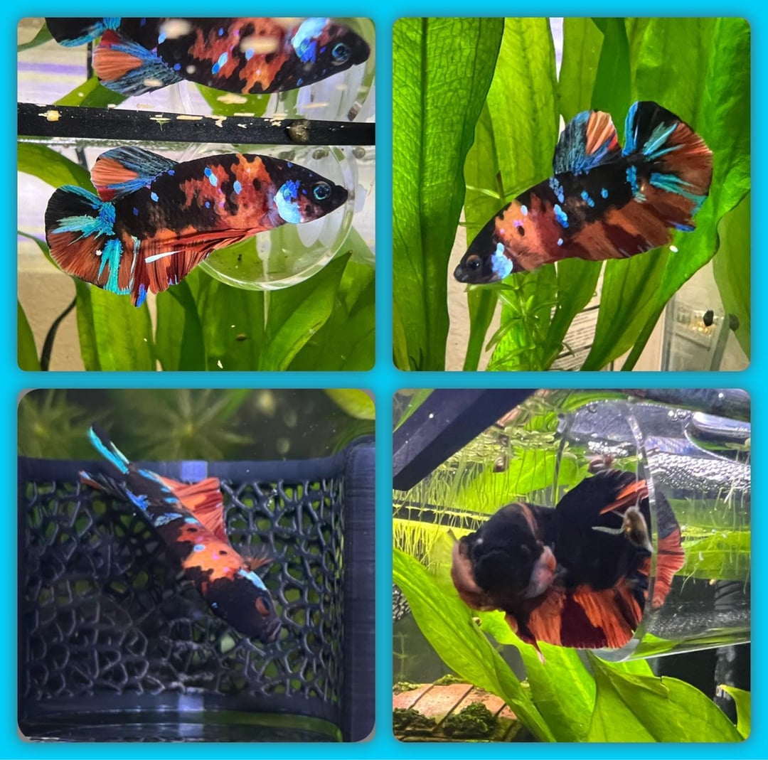 Ooo he’s beautiful! And such a tough guy with his flaring 😫 I had to separate my girl bc she was such a piggy eating algae wafers trying to swim off with the whole thing lol
