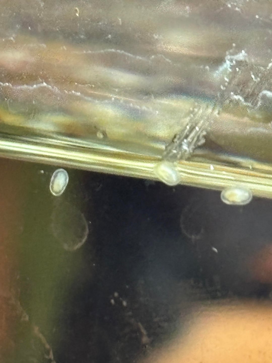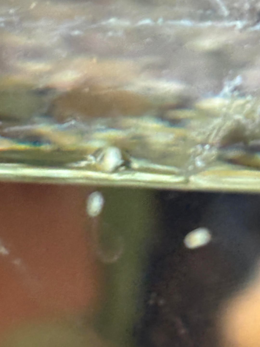 I have a 200L for 3 ranchus and a ryukin, and noticed these tiny white dots on the inside of my tank. They’re a little crunchy feeling and stuck quite firmly to the glass.