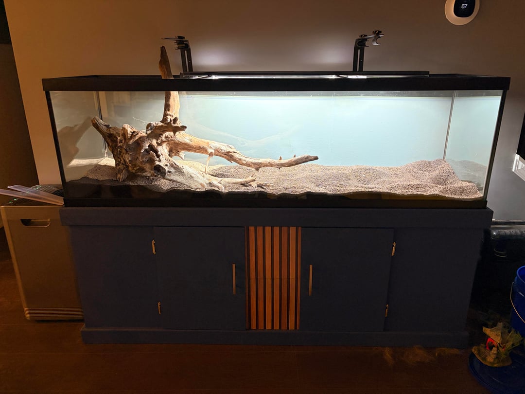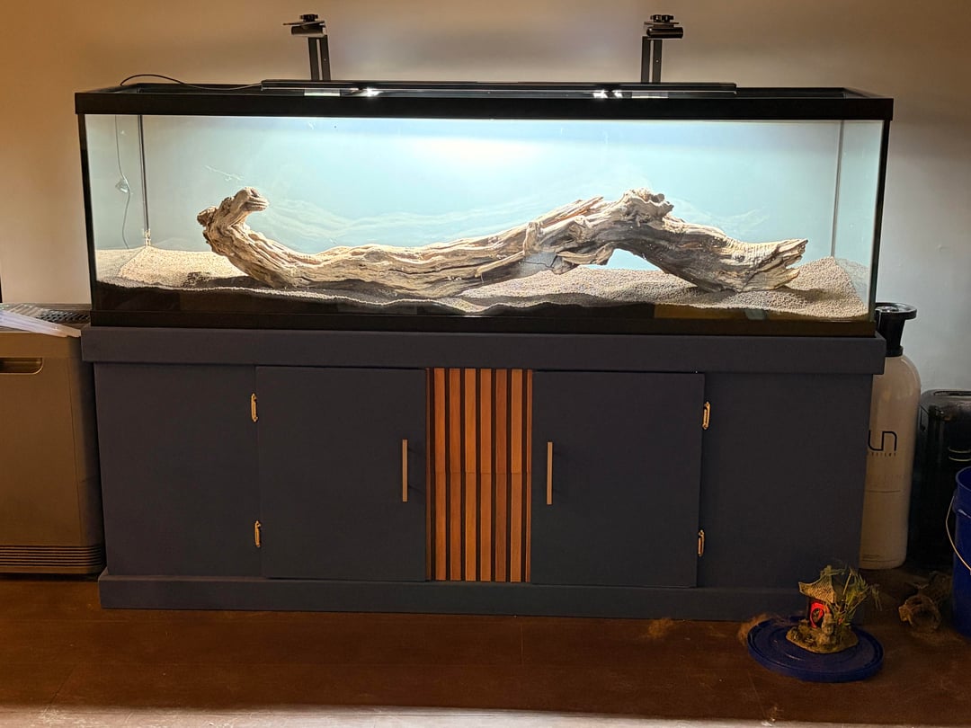 I’m thinking the first one needs one slimmer long piece with it. This is going to be for bichir and ropefish. It’s not done or close. I need more sand still. (Sand example in the left corner) any suggestions I’m open to hear them!