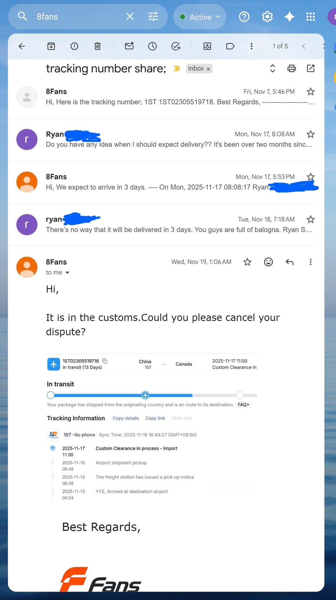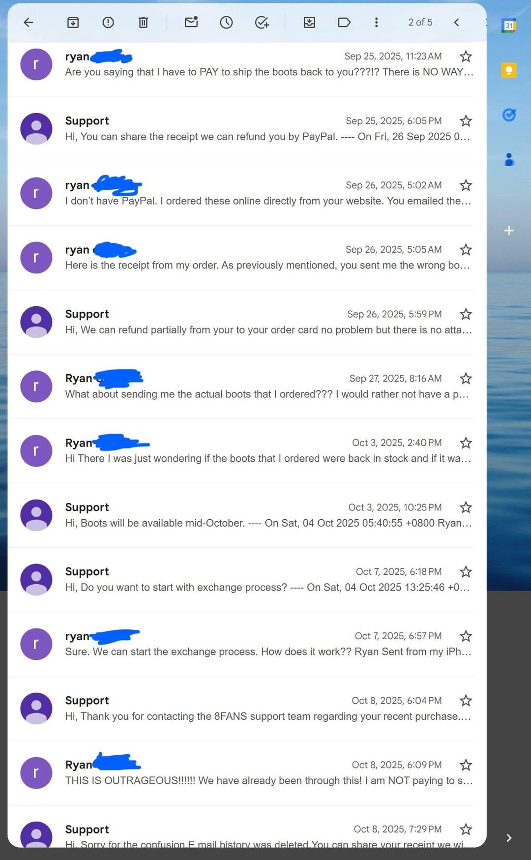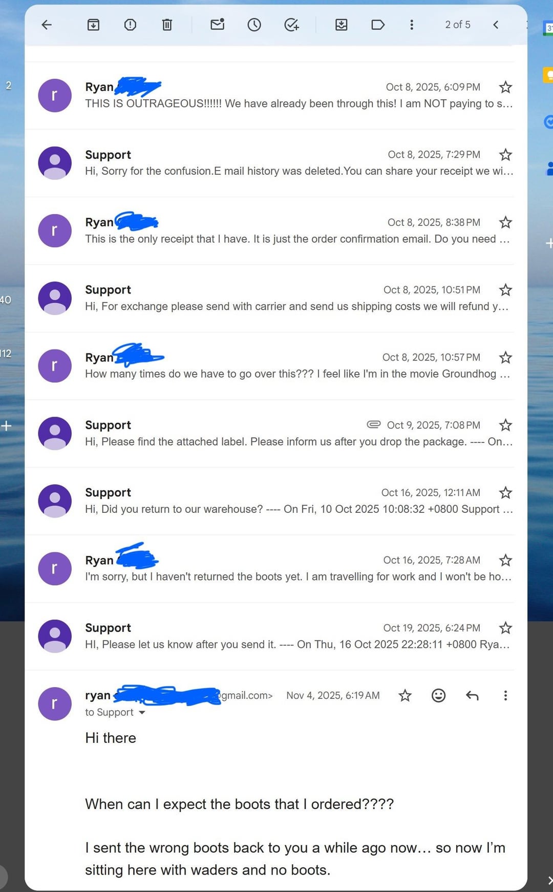 TLDR – Bought waders and boots from 8Fans. They didn’t have the boots I ordered in stock, so they just shipped me some other garbage. Then they demanded that I pay to return ship the boots to them to fix their mistake. They swore that the new boots would be available in the next week for 2 months. I finally decided to dispute the charge with my credit card. That woke them up. It still took a month for them to send me the right boots from China, and they asked me to cancel the credit card dispute while the boots were still stuck in customs on the other side of the country.